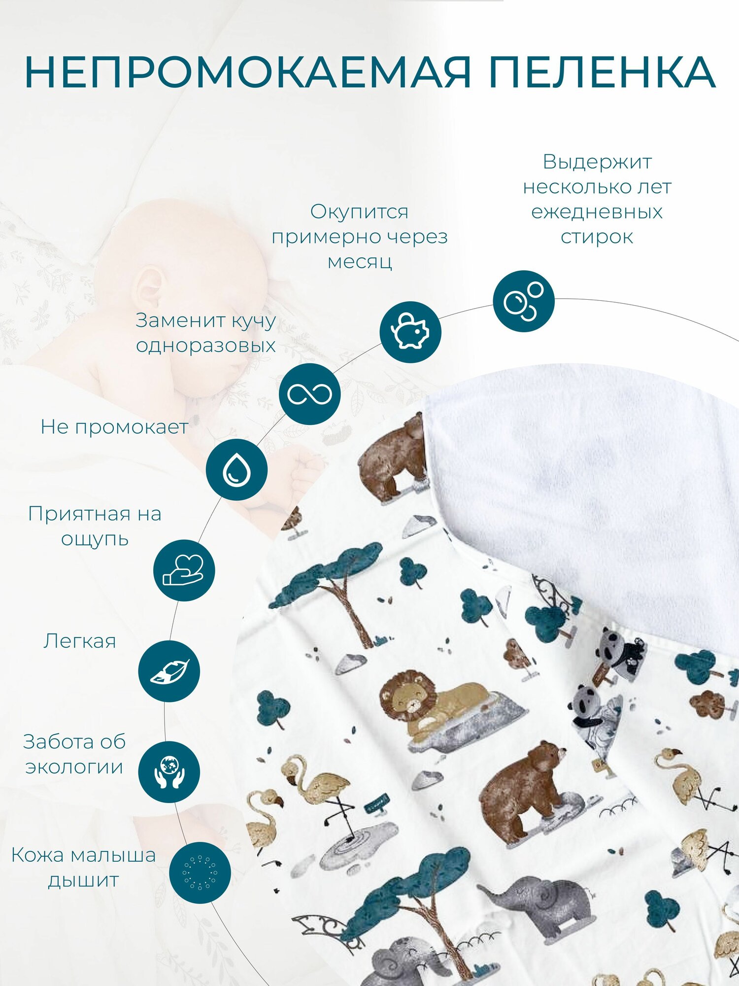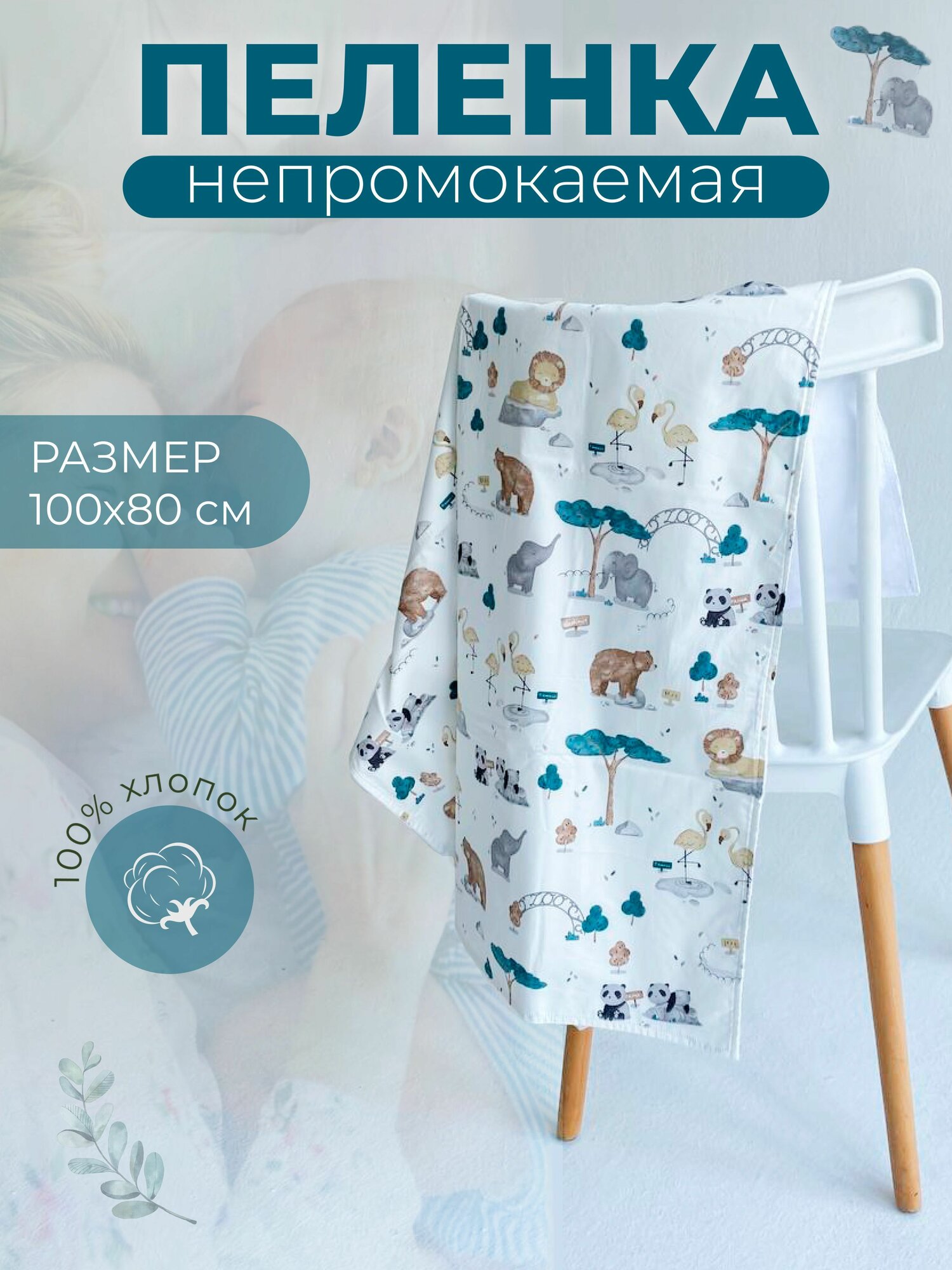 Многоразовая непромокаемая пеленка для новорожденных 80х100 см, 1 шт Мако интересное:
