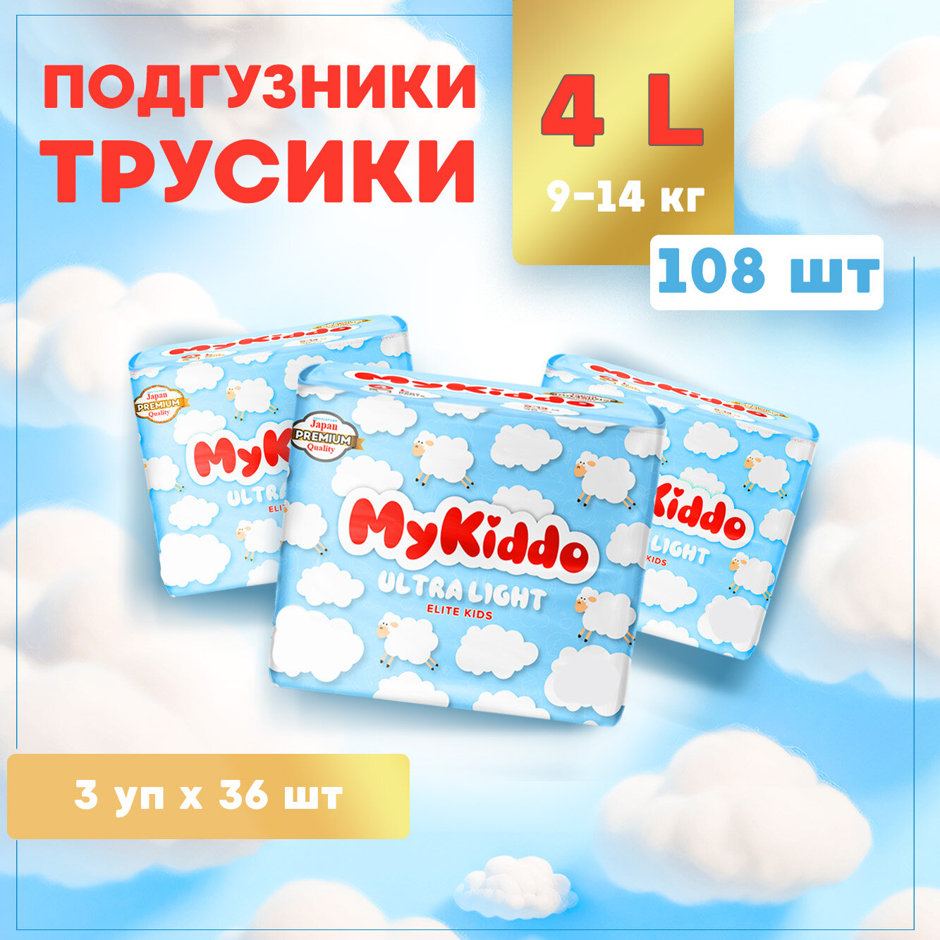 Купить Подгузники трусики детские ультратонкие MyKiddo Elite Kids супервпитывающие, размер 4 L, для детей с весом 9-14 кг, 108 шт. (3 упаковки по 36 шт.) мегабокс