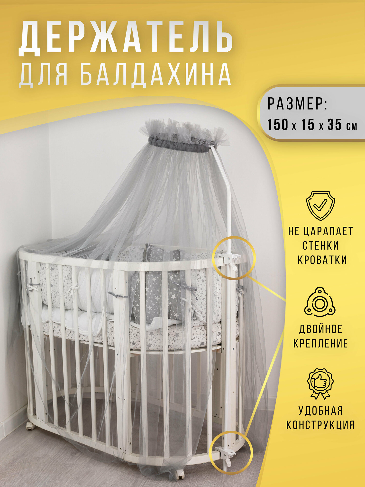 Держатель для балдахинов на кроватку с фиксаторами интересное:
