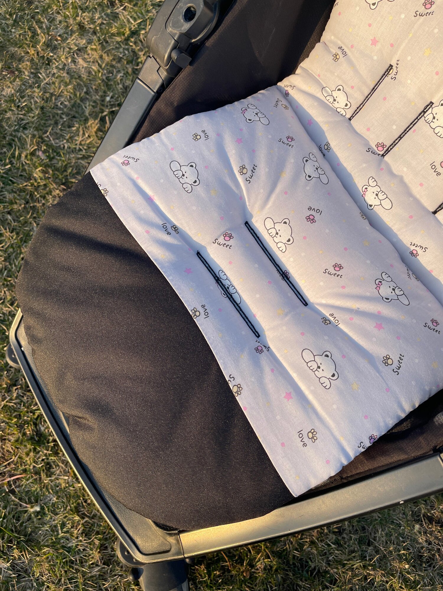 Матрасик в коляску прогулочную двусторонний весенний летний с креплением на колску интересное: