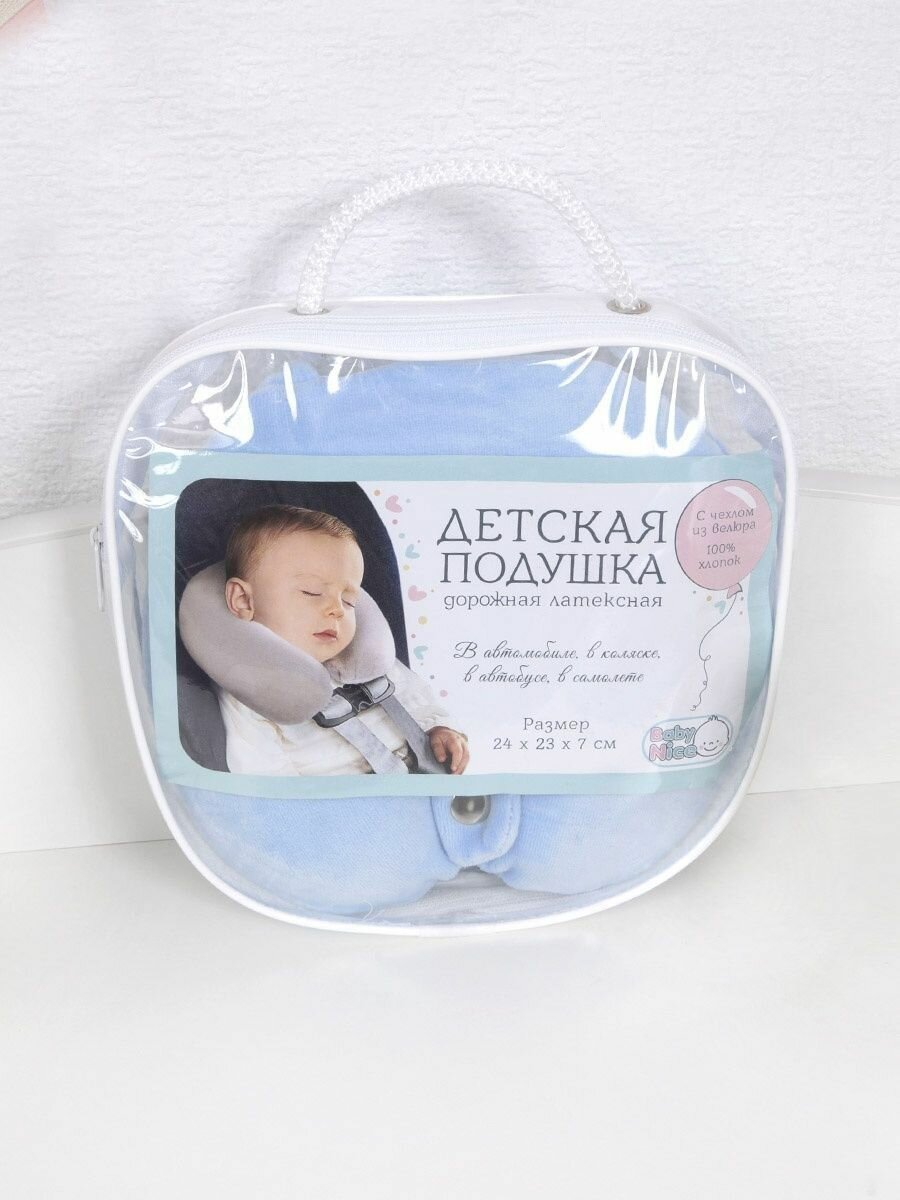 Подушка детская для путешествий, для шеи с эффектом памяти, Baby Nice, голубой 26х25х6 интересное: