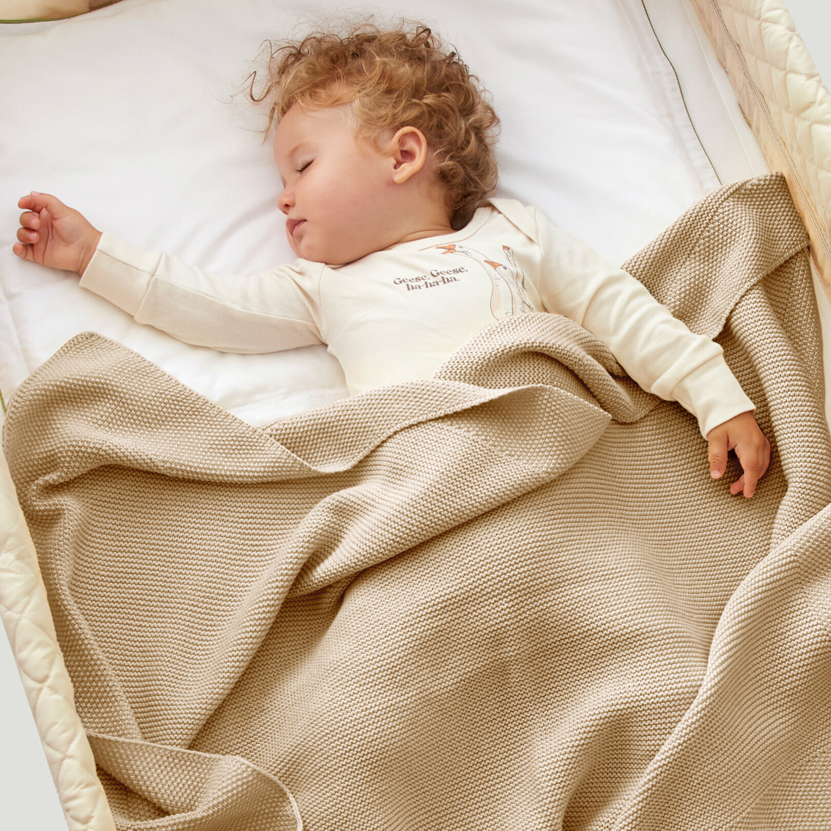 90120, Плед для новорожденных 100х100, Happy Baby, одеяло для новорожденного, покрывало в коляску, хлопок акрил, бежевый