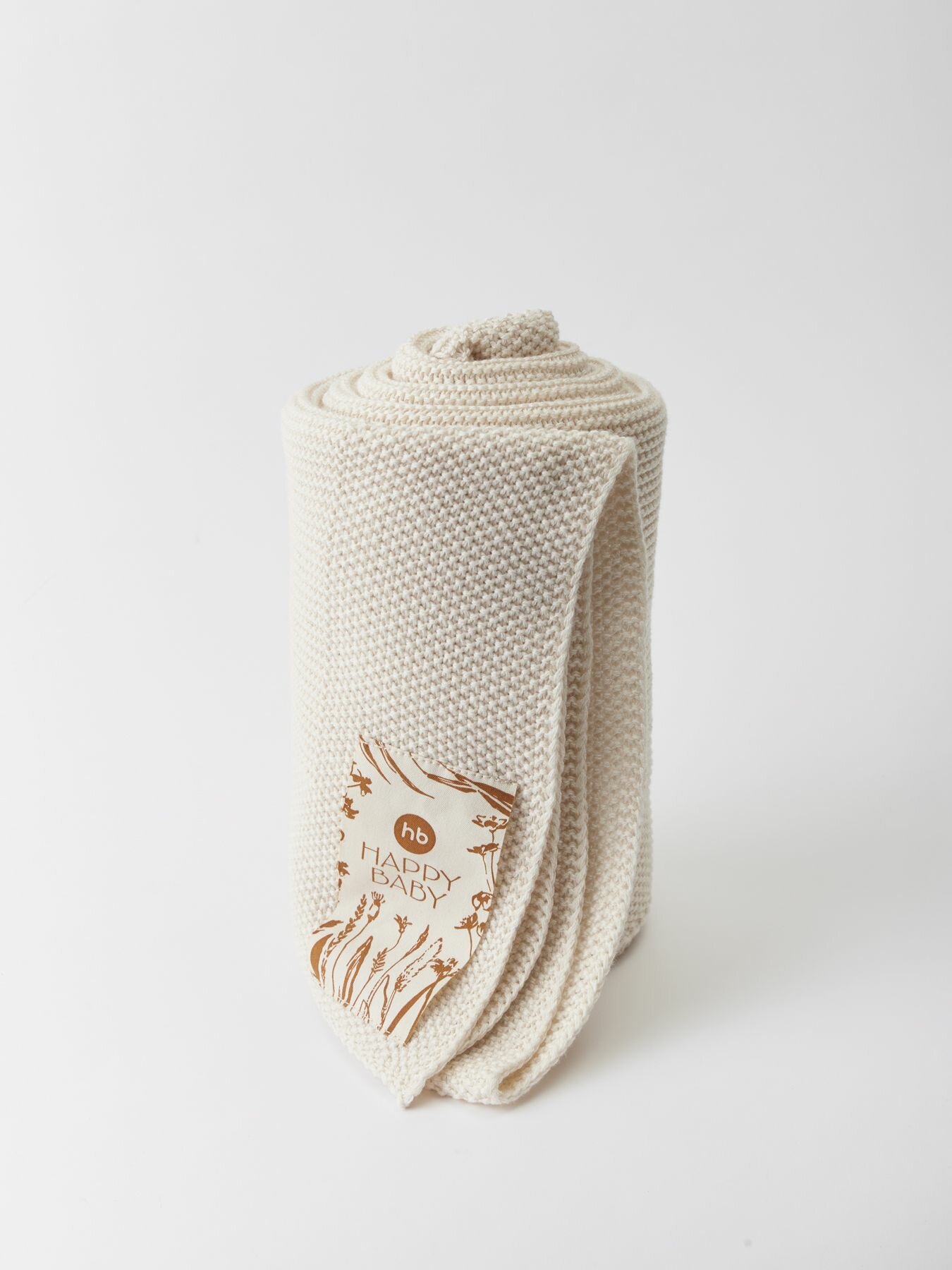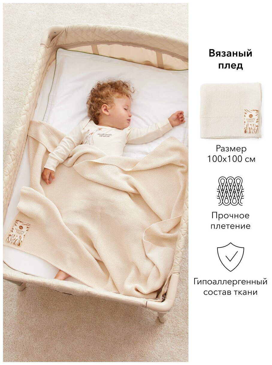 90120, Плед для новорожденных 100х100 Happy Baby, одеяло для новорожденного, покрывало в коляску, хлопок акрил, бежевый