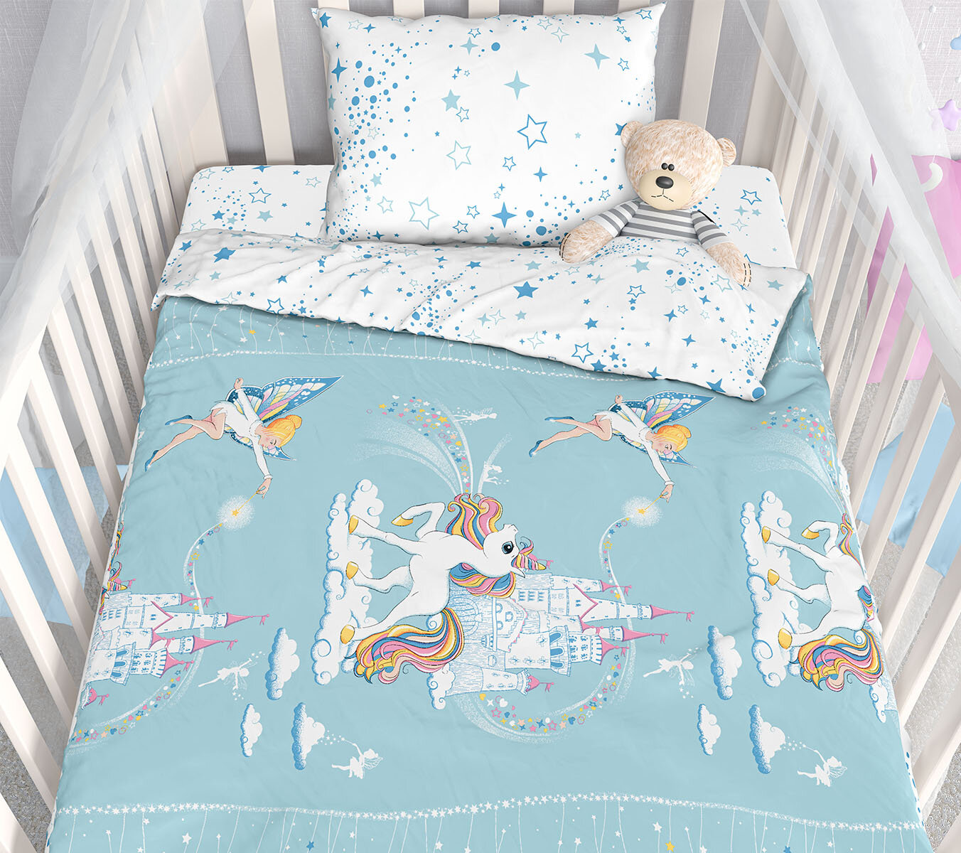 Купить Детское постельное белье в кроватку Волшебный мир, бязь, хлопок 100%