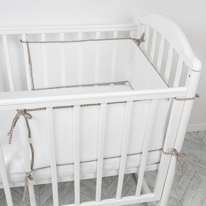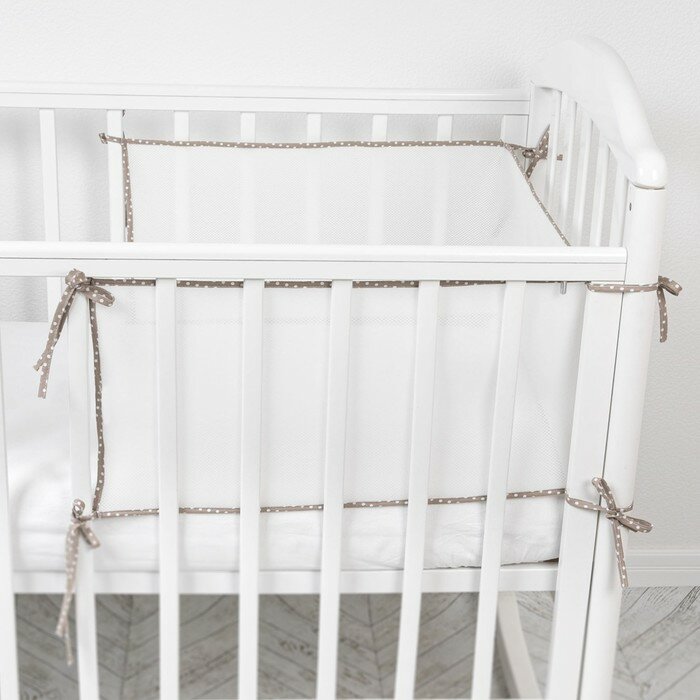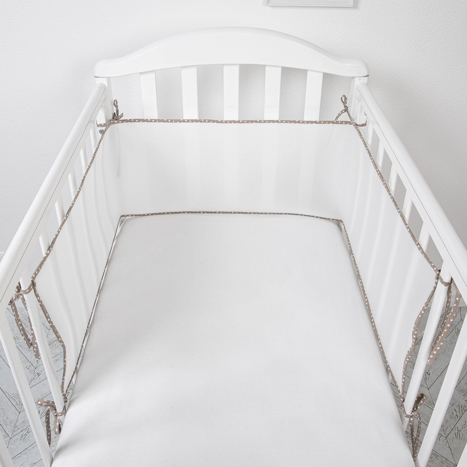 Купить Бортики в кроватку для новорожденных сетка 31х180 см, на прямоугольную, круглую, овальную кровать, цвет бежевый