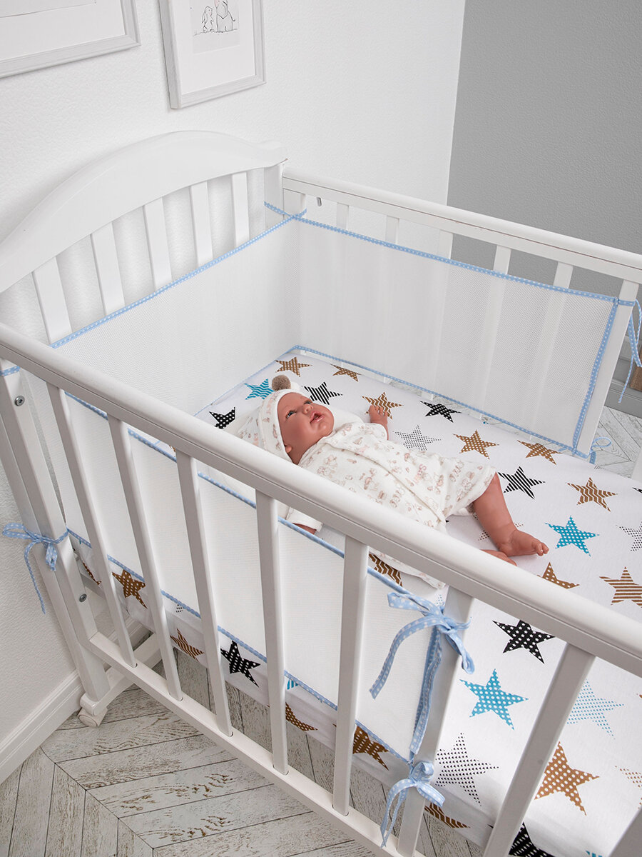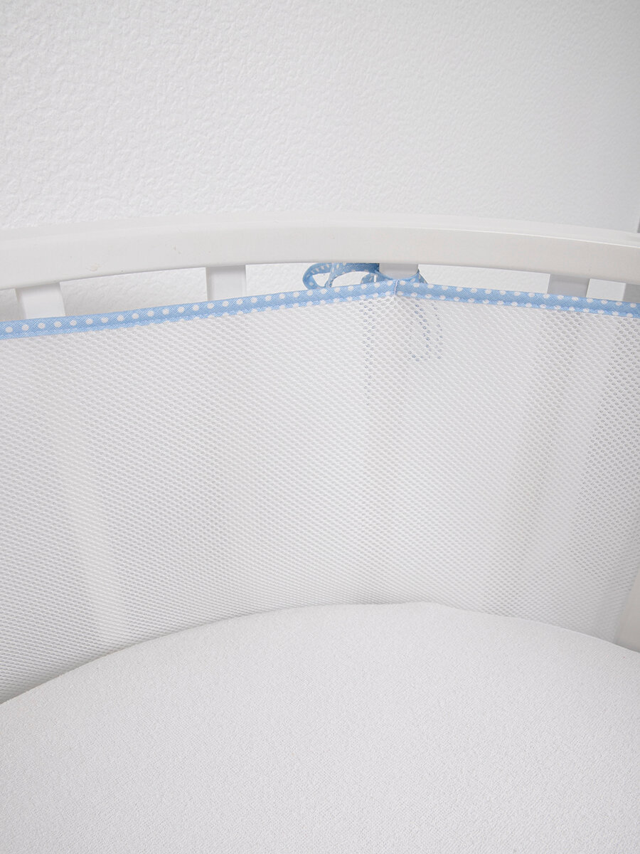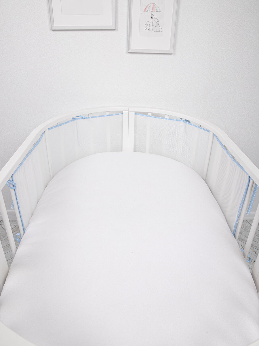 Купить Бортики в кроватку для новорожденных сетка 31х180, на прямоугольную, круглую, овальную кровать, цвет голубой