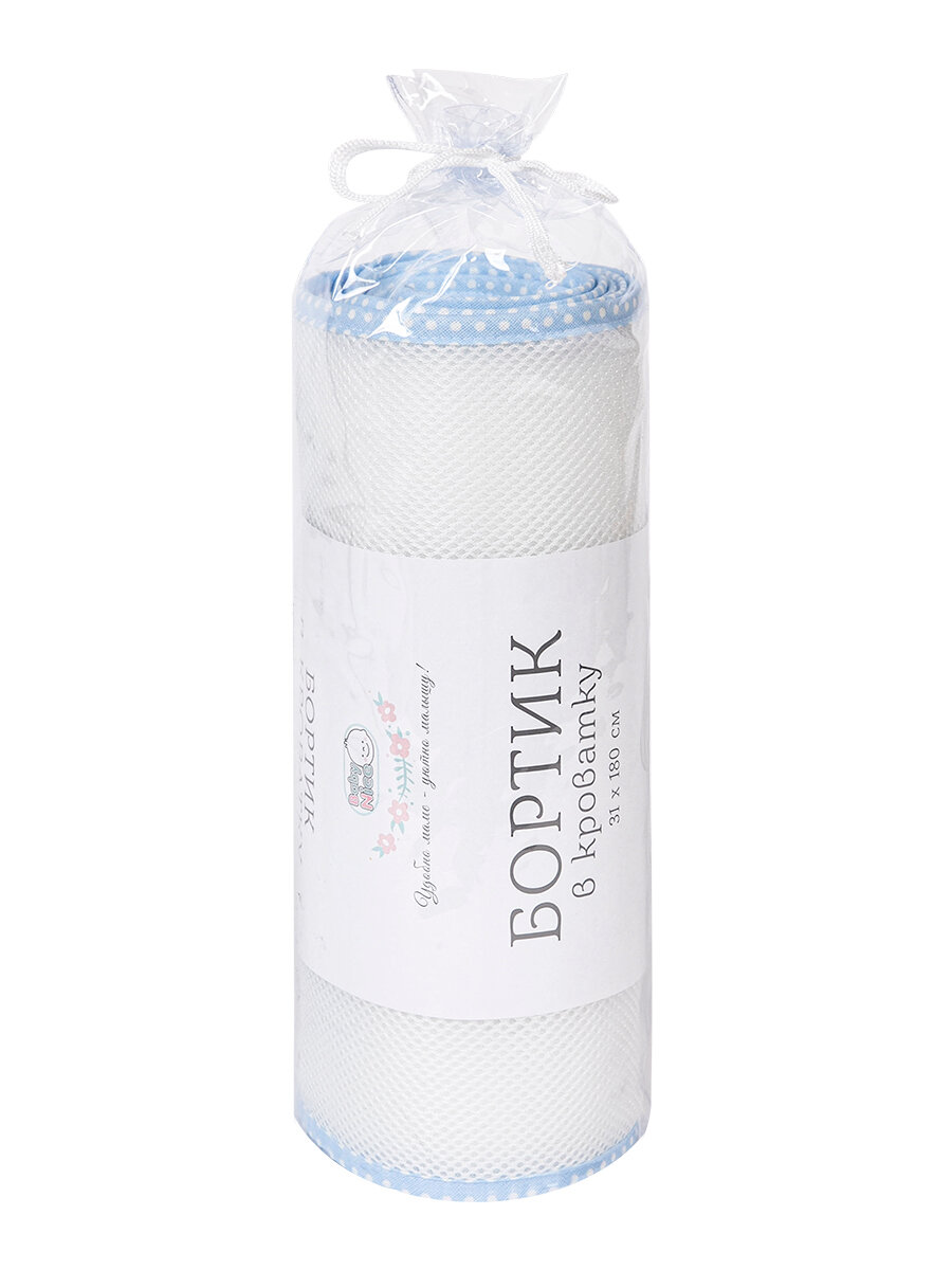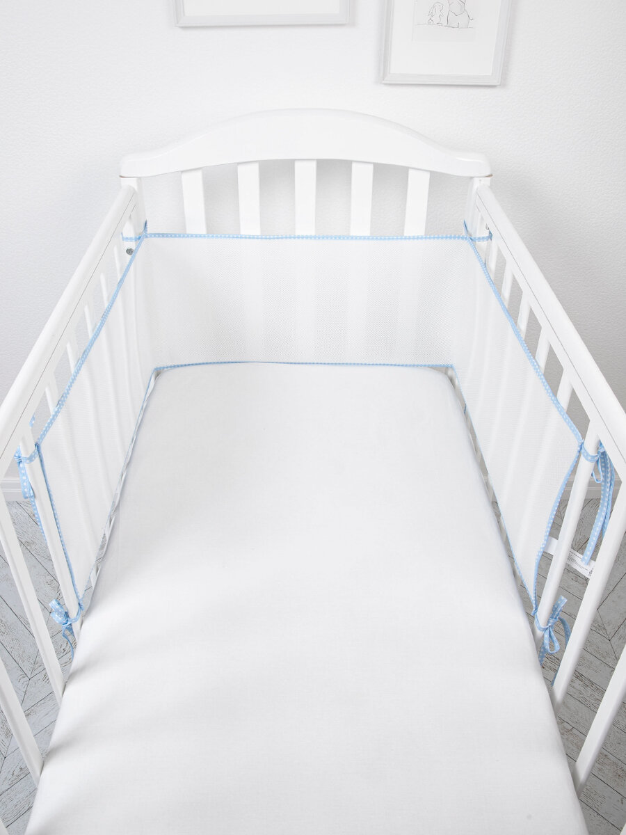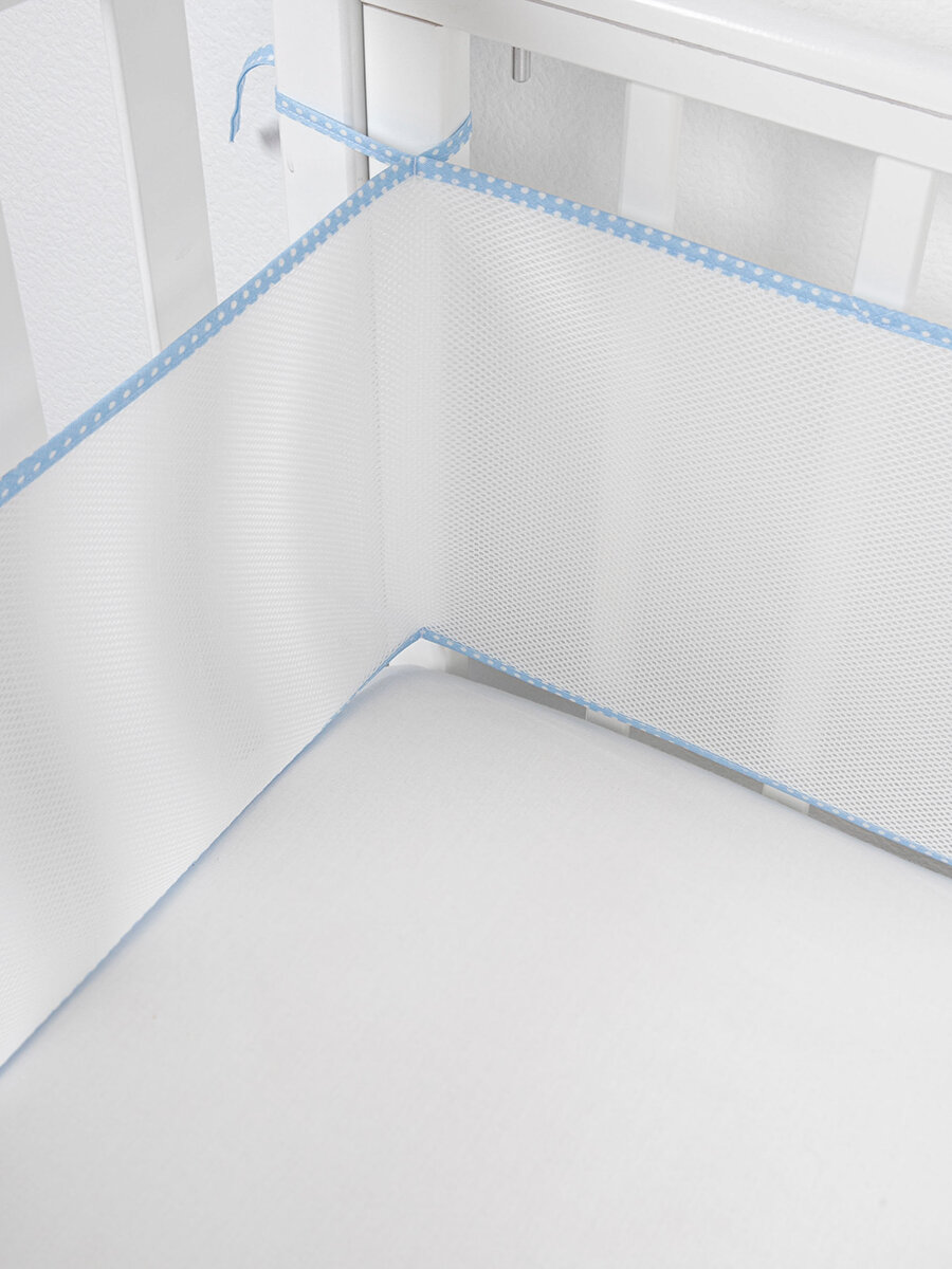 Бортики в кроватку для новорожденных сетка 31х180, на прямоугольную, круглую, овальную кровать, цвет голубой