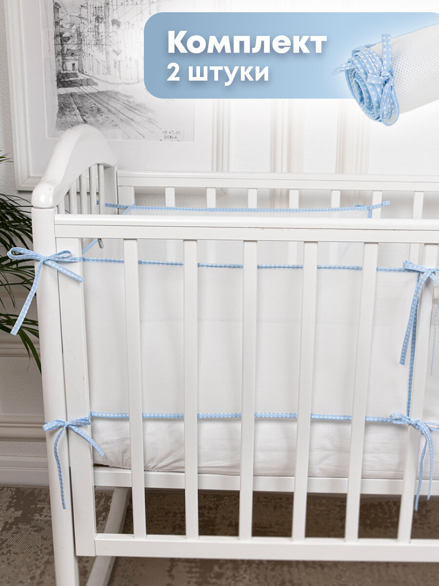 Купить Бортики в кроватку для новорожденных 2 шт сетка 31х180 см, на прямоугольную, круглую, овальную кровать, цвет голубой