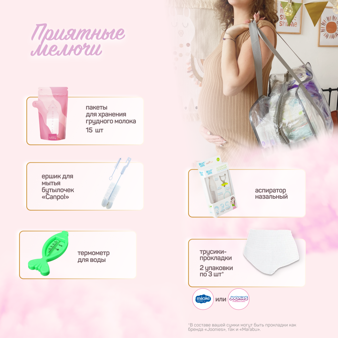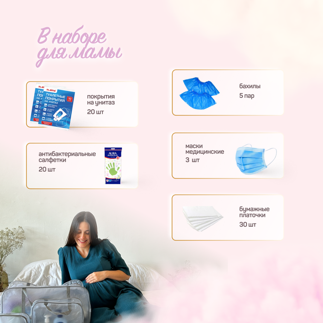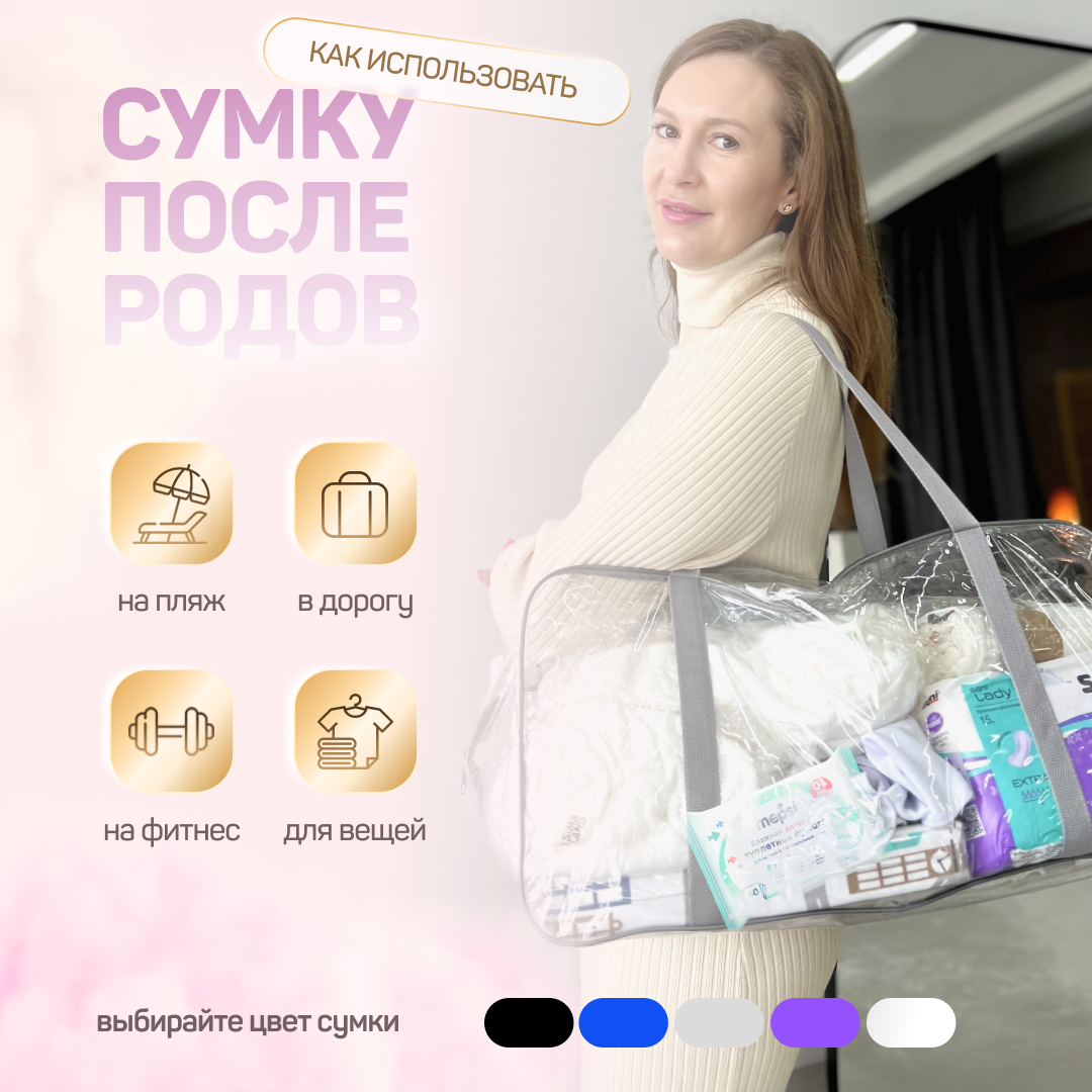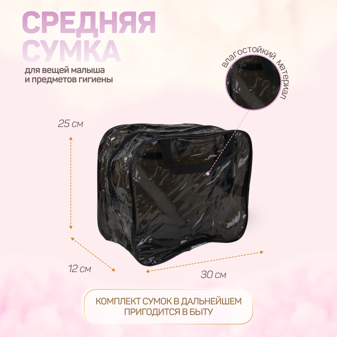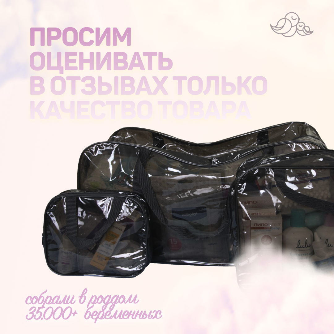 Сумка в роддом готовая для мамы и малыша с наполнением, 43 предмета + 3 сумки, комплектация "Супер Мама", прозрачная