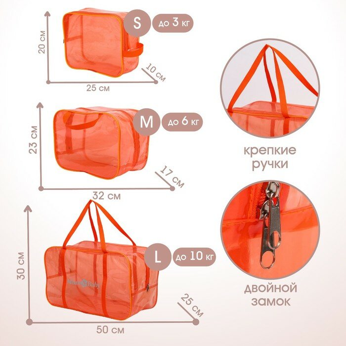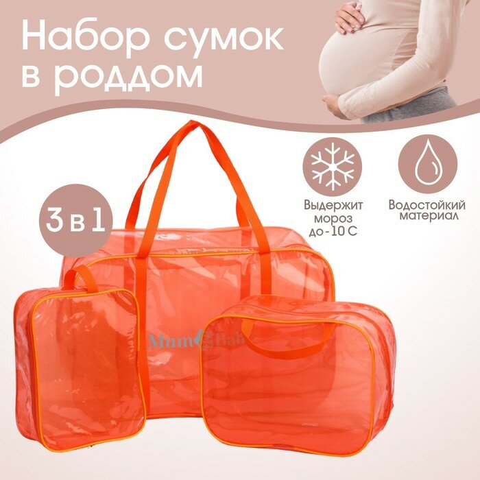 Набор сумок в роддом, 3 шт., цвет прозрачный/оранжевый, M&B интересное: