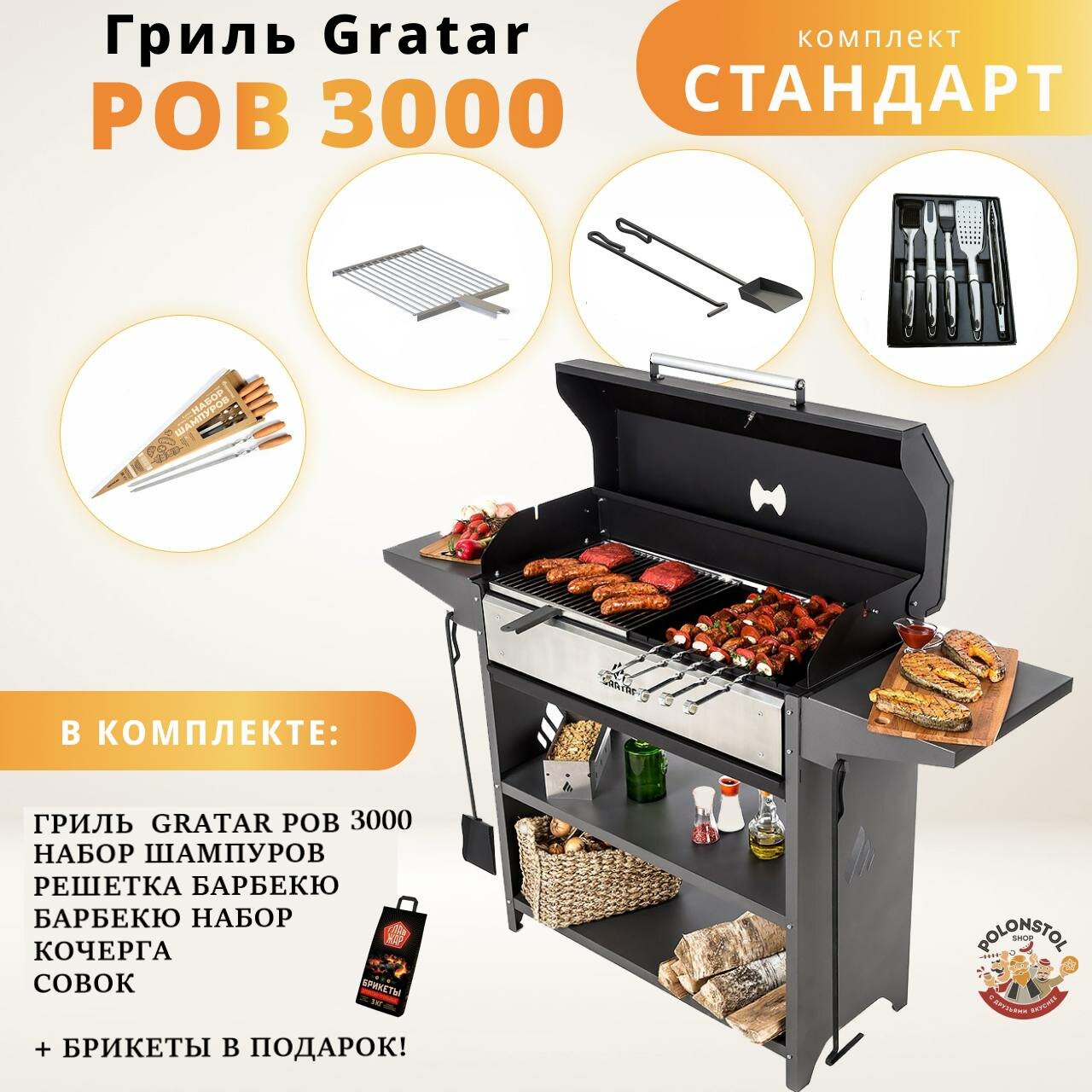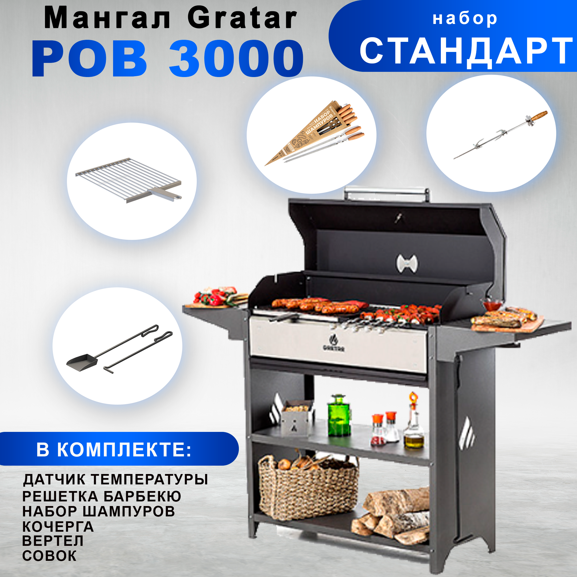 Гриль, мангал Gratar Professional Optima BBQ, с набором аксессуаров "Стандарт" интересное: