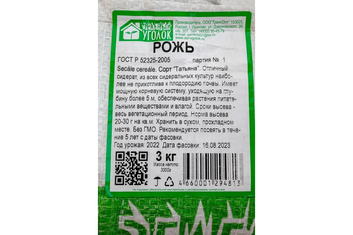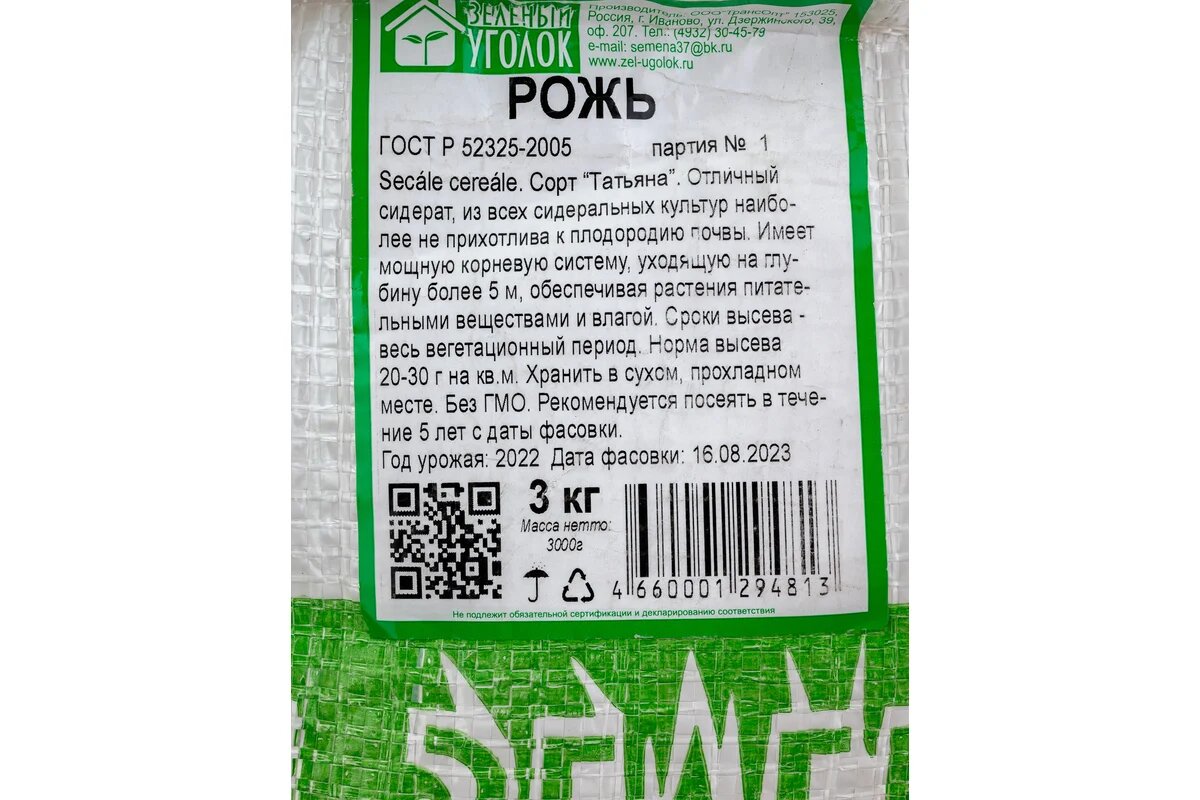 Семена Рожь 3 кг интересное: