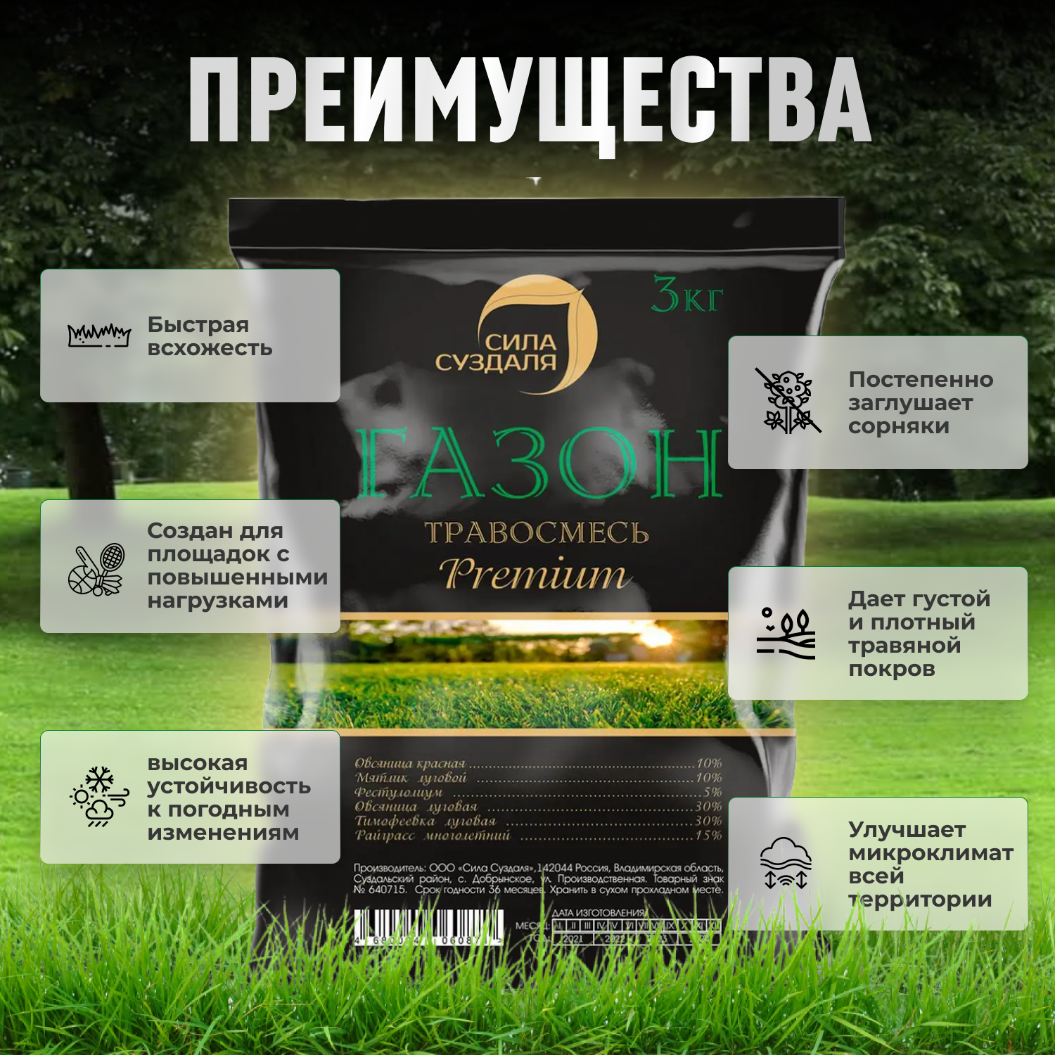 Купить Семена газонной травы "Премиум" 3 кг Сила Суздаля, семена газон