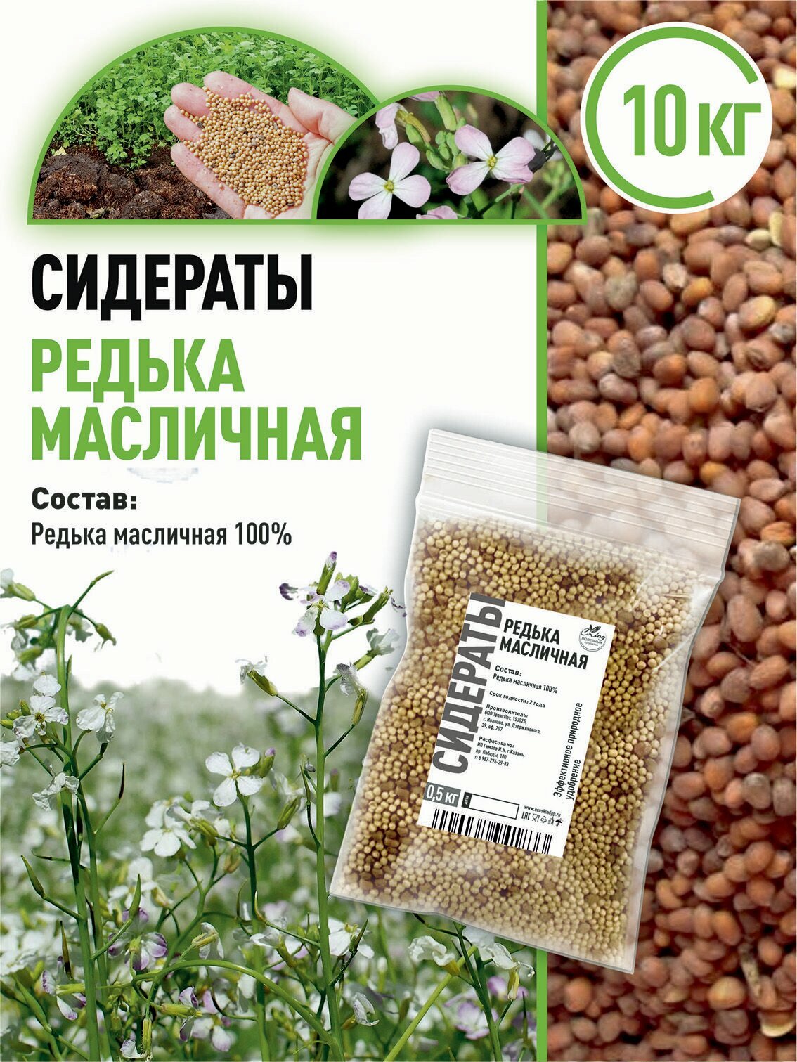 | Состав смеси | Семена редьки масличной - 100% |