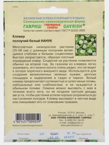 Клевер белый 20г Нанук ползучий (Гавриш) 10/500 интересное: