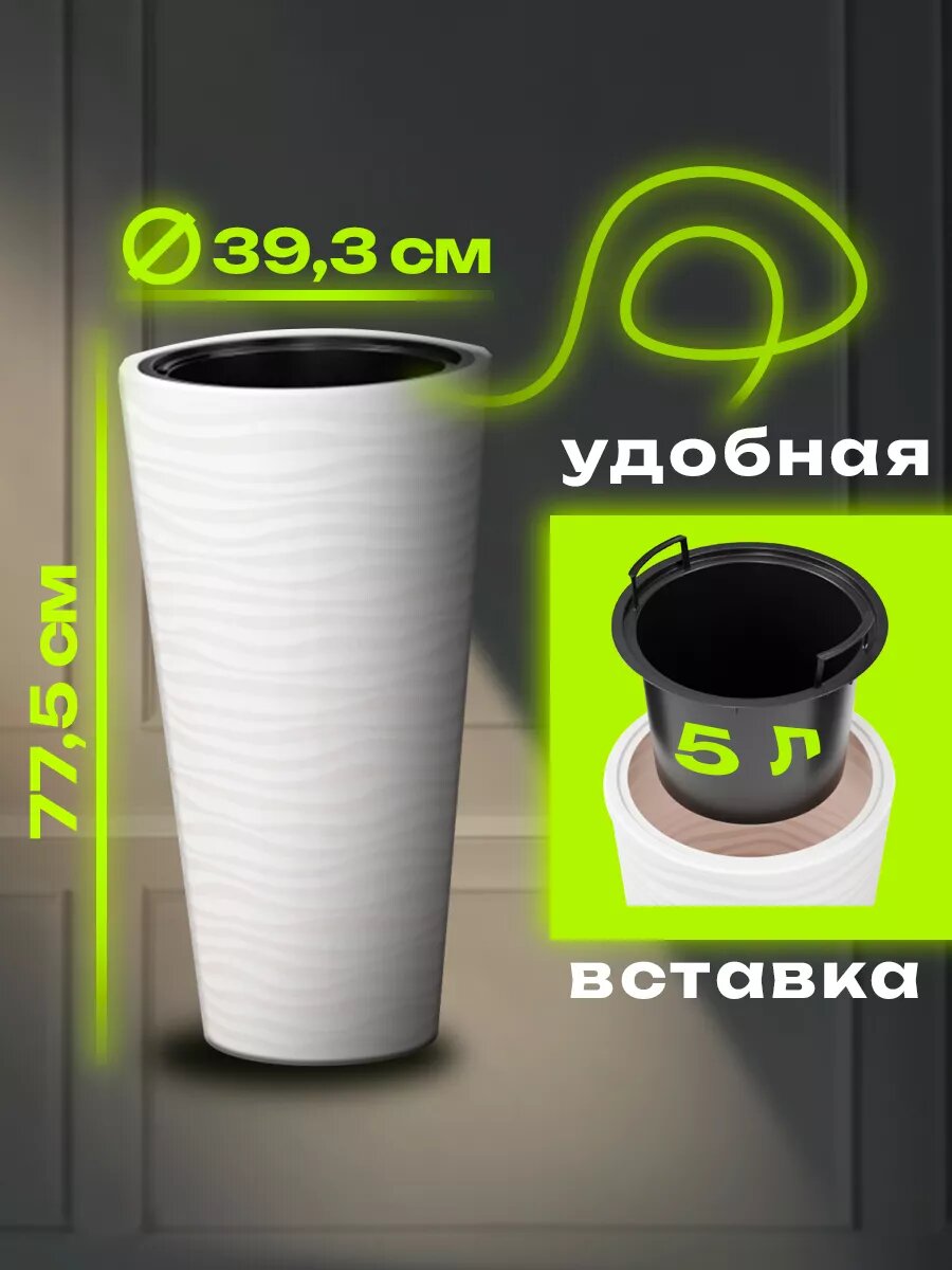 Кашпо горшок для цветов и растений, напольное высокое, объем 63 л, цвет белый