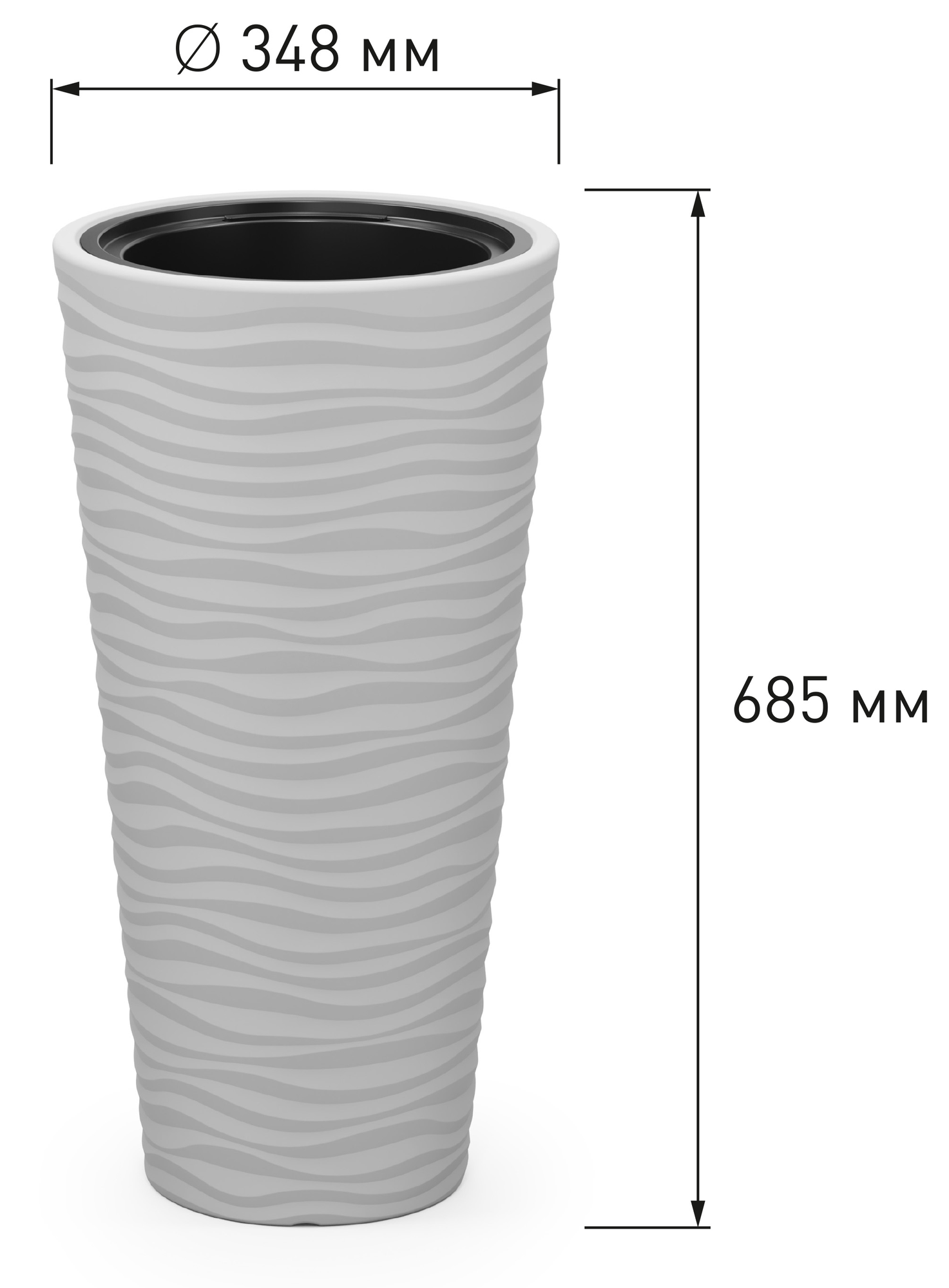 Кашпо "Оазис" 43л (со вставкой 10л) серый. Объемная текстура "волна" создает красивые блики на поверхности и придает изделию особый шарм