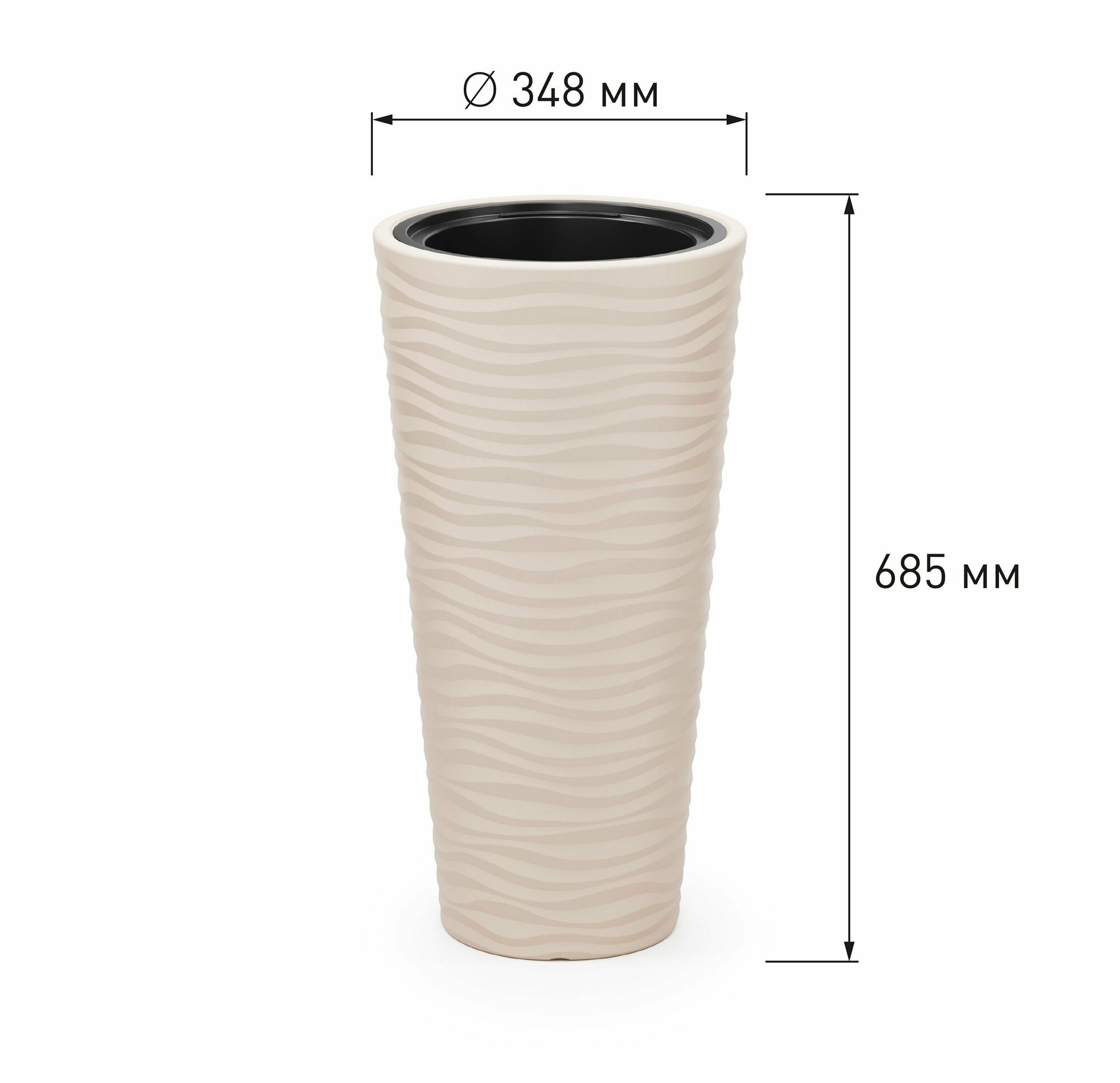 Кашпо "Оазис" 43л (со вставкой 10л) серый. Объемная текстура "волна" создает красивые блики на поверхности и придает изделию особый шарм