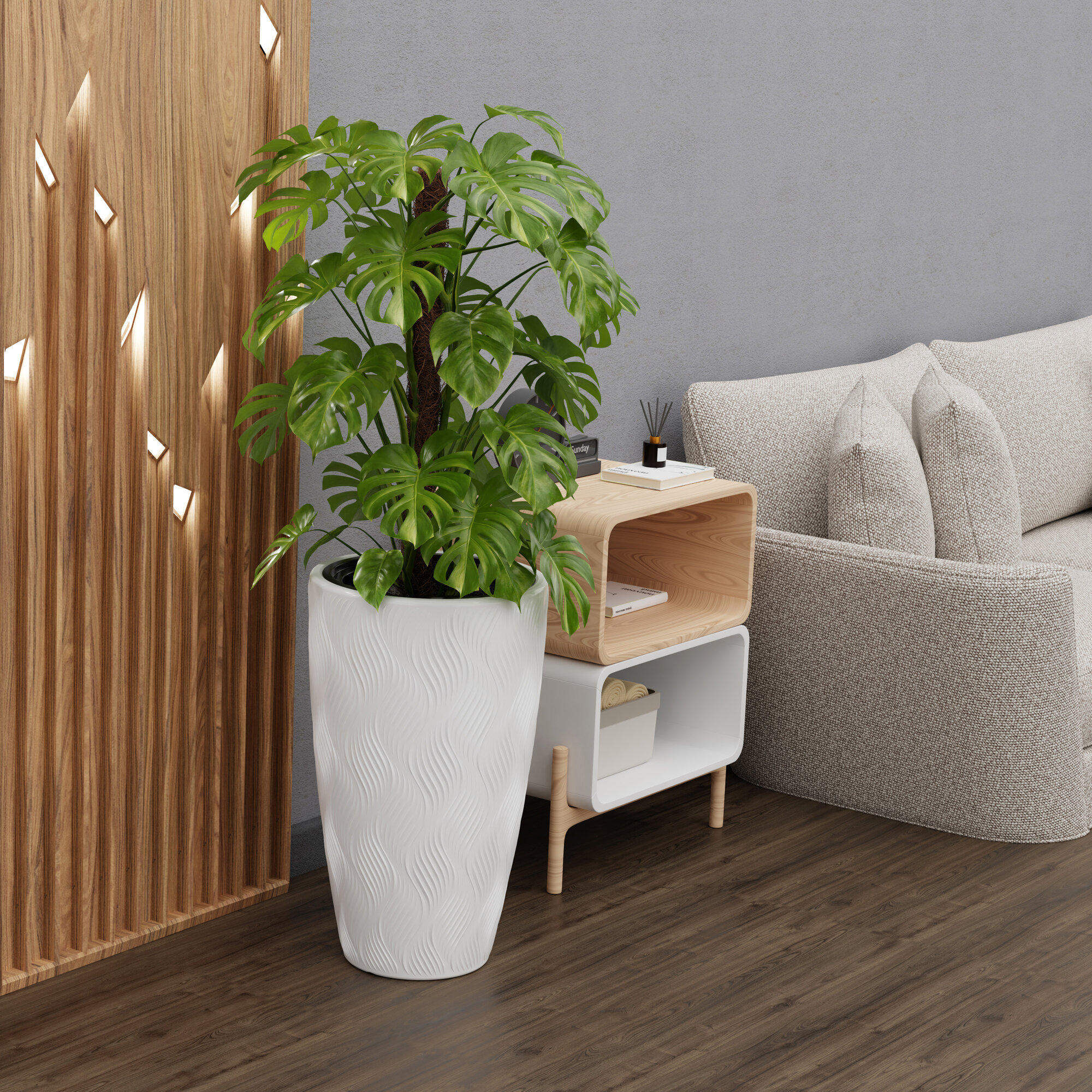 Кашпо "Оазис" 43л (со вставкой 10л) серый. Объемная текстура "волна" создает красивые блики на поверхности и придает изделию особый шарм