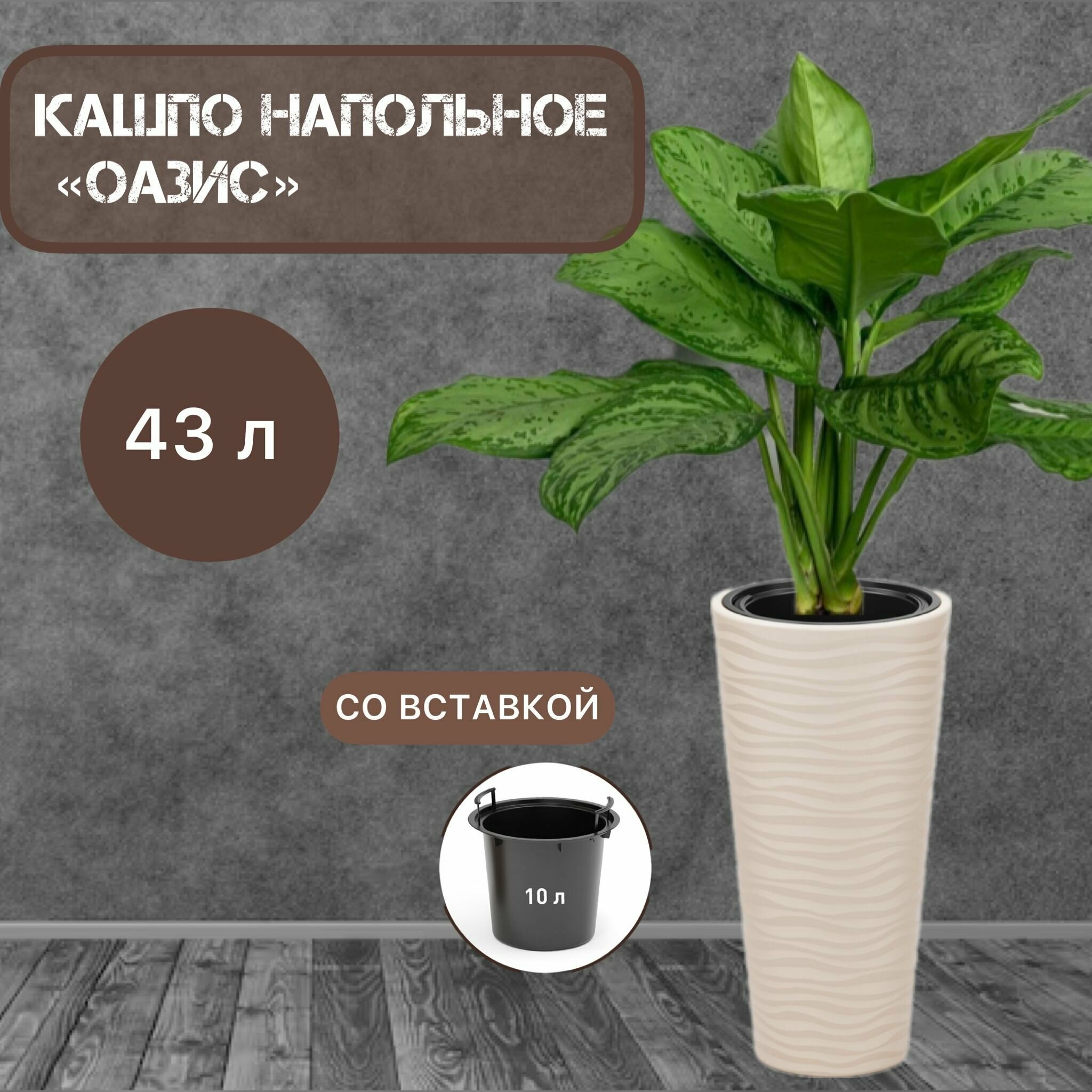 Кашпо напольное "Оазис" 43л (со вставкой 10л) св. бежевый М8080