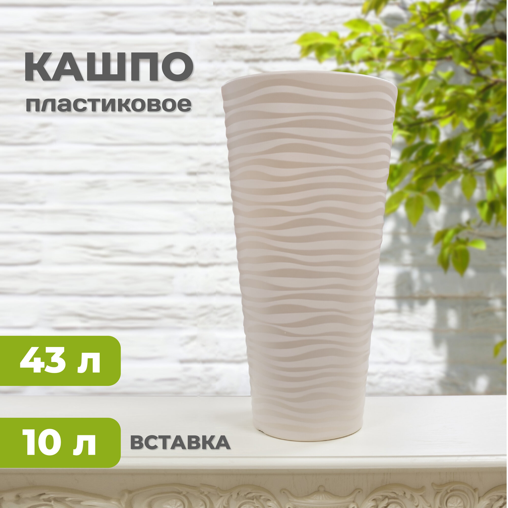 Кашпо "Оазис" 43л (со вставкой 10л) серый. Объемная текстура "волна" создает красивые блики на поверхности и придает изделию особый шарм