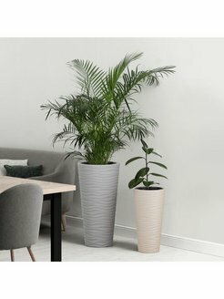 Кашпо "Оазис" 43л (со вставкой 10л) серый. Объемная текстура "волна" создает красивые блики на поверхности и придает изделию особый шарм