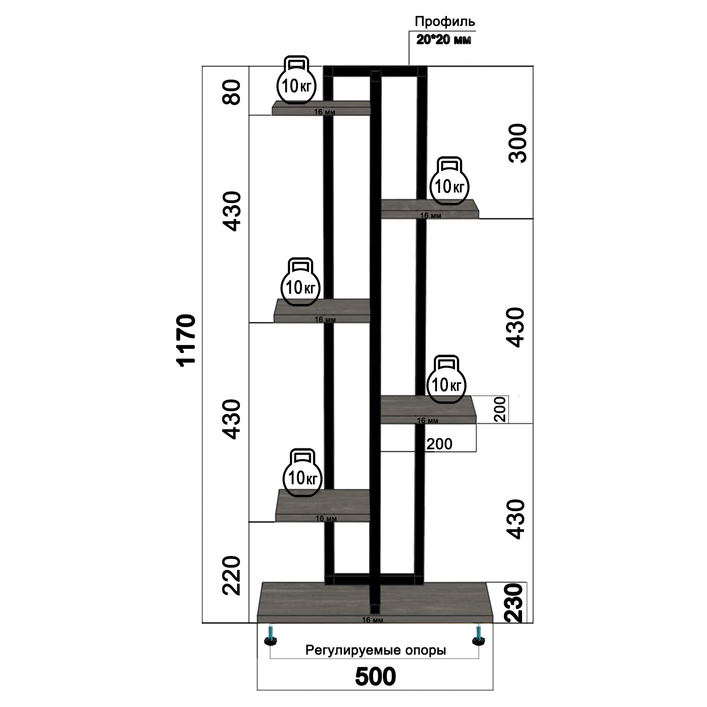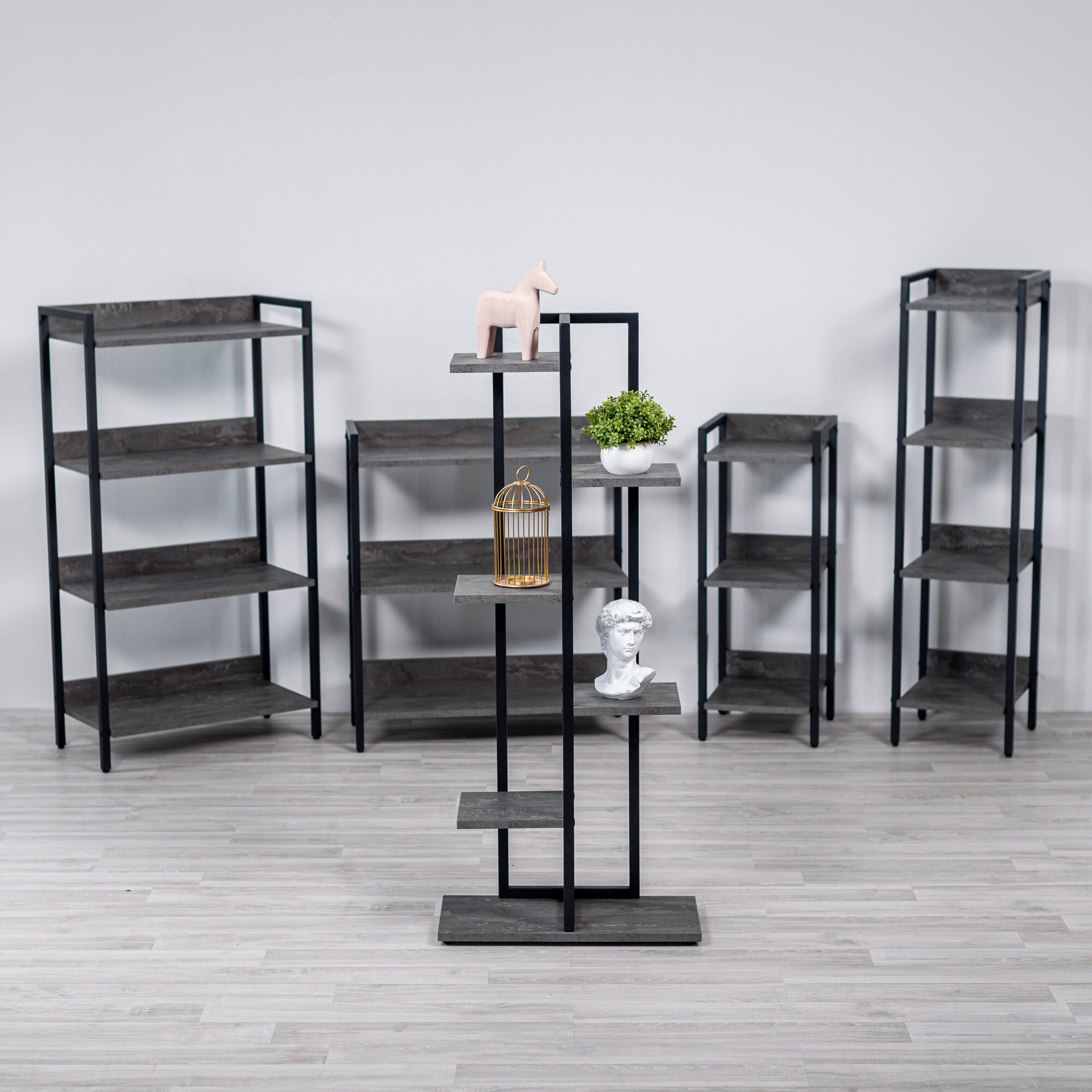 Цветочница AlisMi лофт из ЛДСП и металла, темная, 117х50х20 см, 7 полок