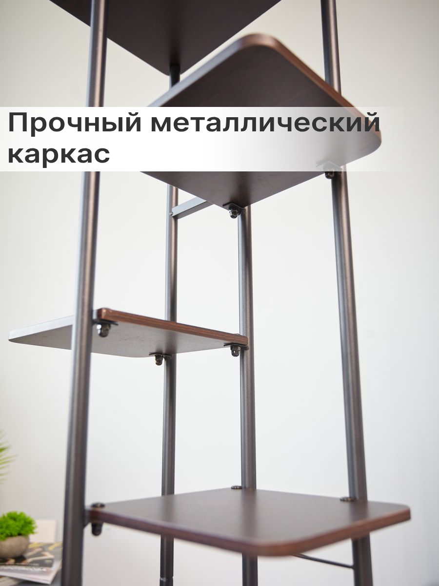 RombiLux Подставка для цветов напольная или на подоконник металлическая с деревянными полками