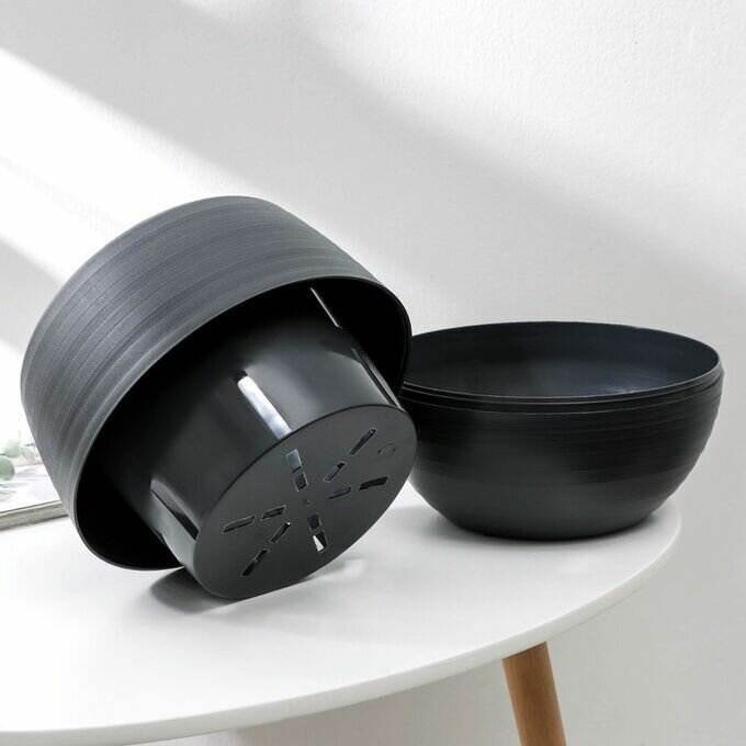 Горшок для цветов с поддоном ''Япония'', 125 мл, d-8 см, h-6,5 см, цвет графитовый интересное: