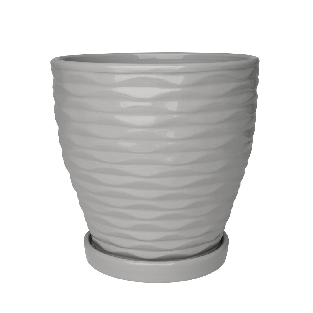 Горшок для цветов с литым поддоном / Керамический цветочный горшок 2,5 литра серый