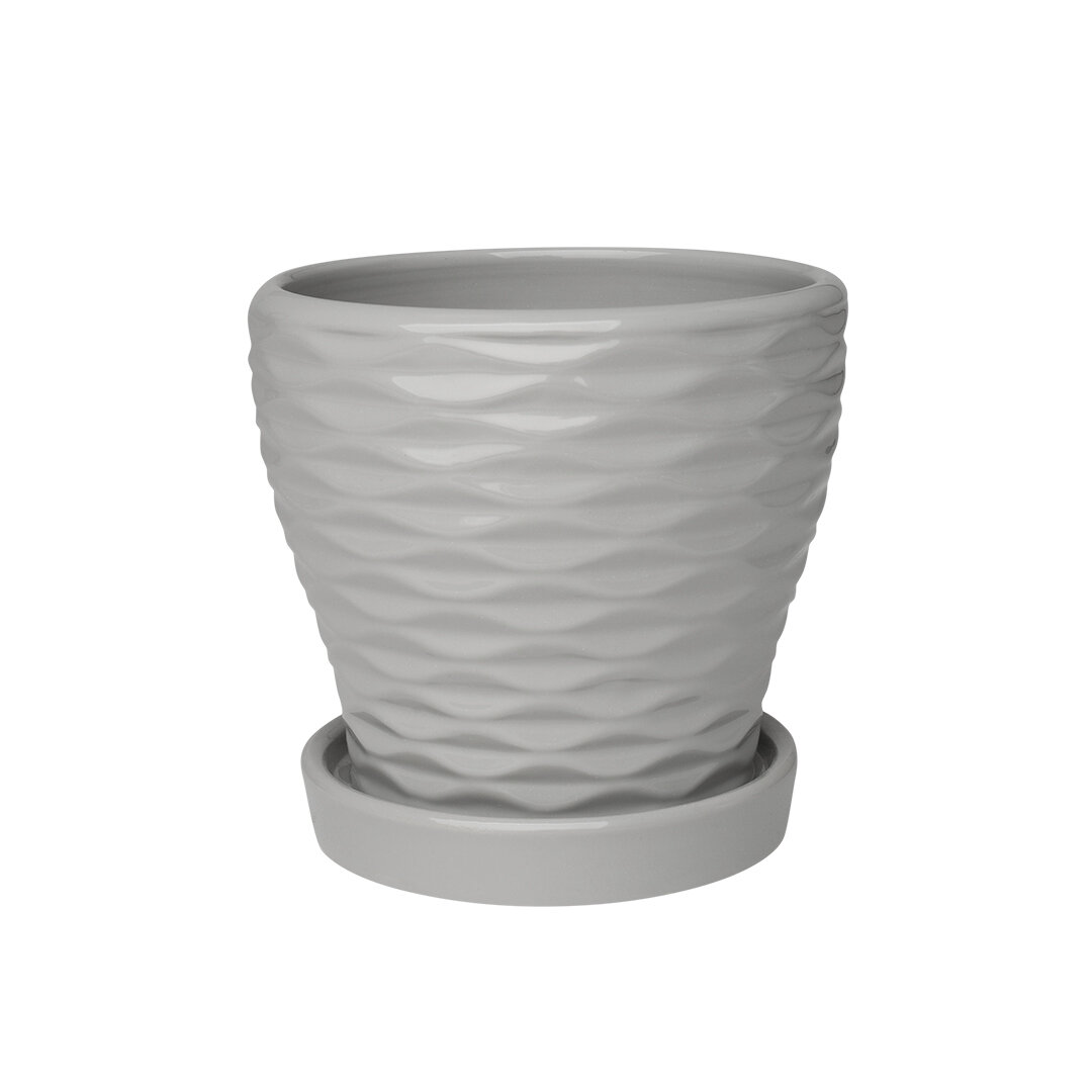 Вещицы Горшок для цветов с поддоном керамический 1,35 литра серый Fdtc8