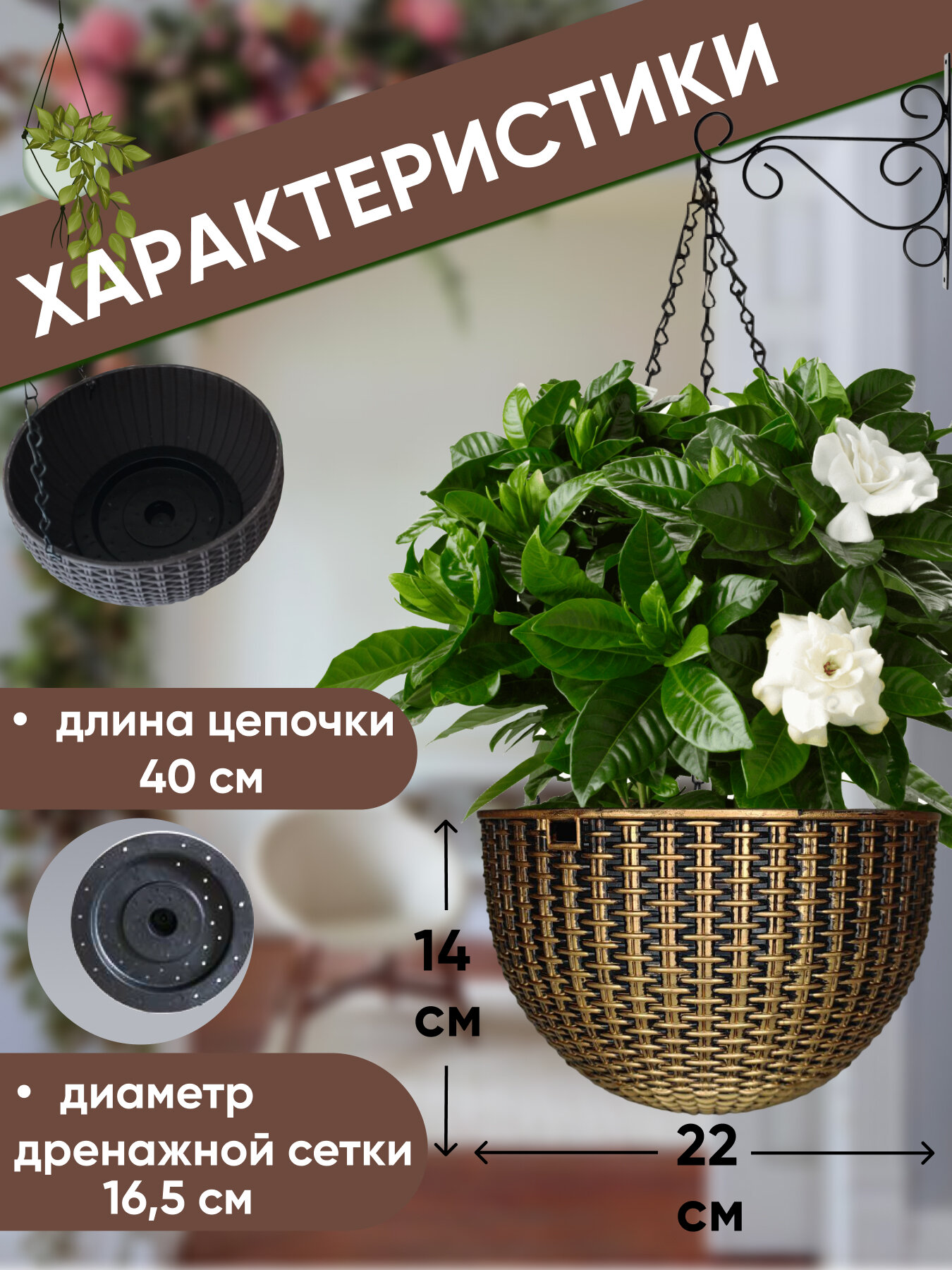 Кашпо подвесное для цветов со вставкой в стиле ротанга Бронзовый интересное: