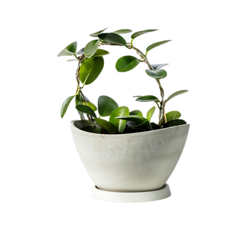 Горшок для цветов и растений с поддоном GreenShip H-09YB15 Лодочка 15x11x10 см, 0.6л, бело-серый (слоновая кость)