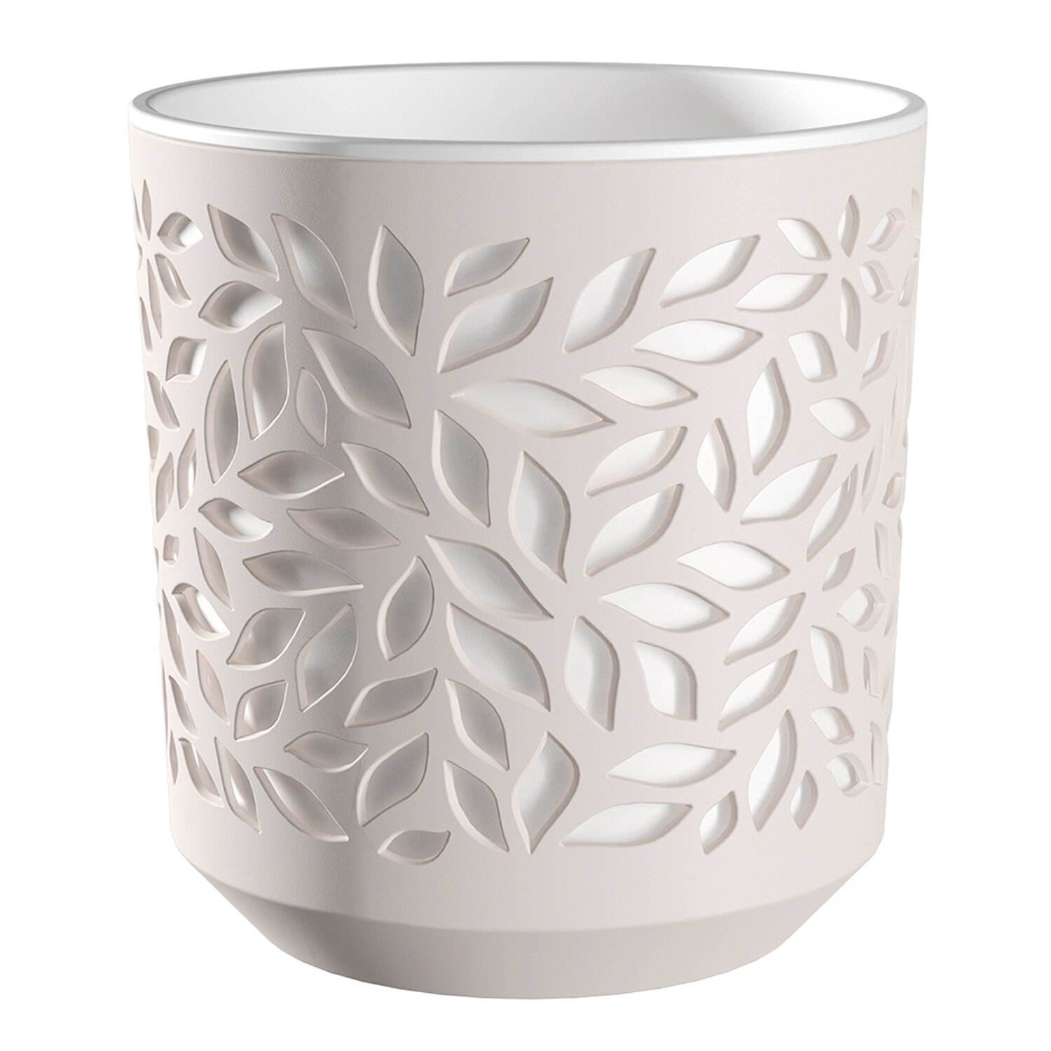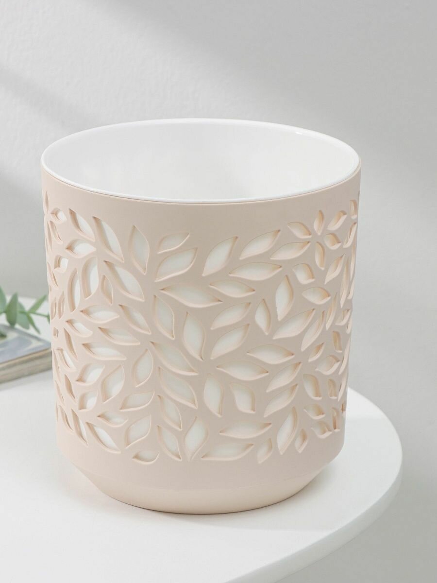 Кашпо пластик, 1.25 л, 13х13.5 см, пудра/белый, ВМС, Leaves, КШ-9823