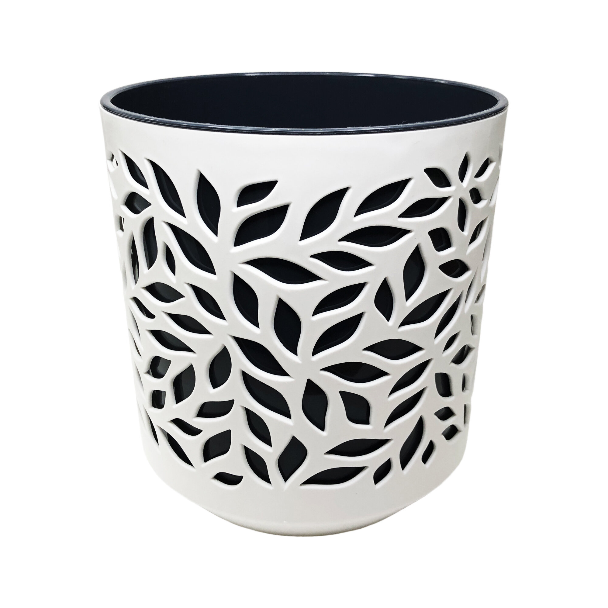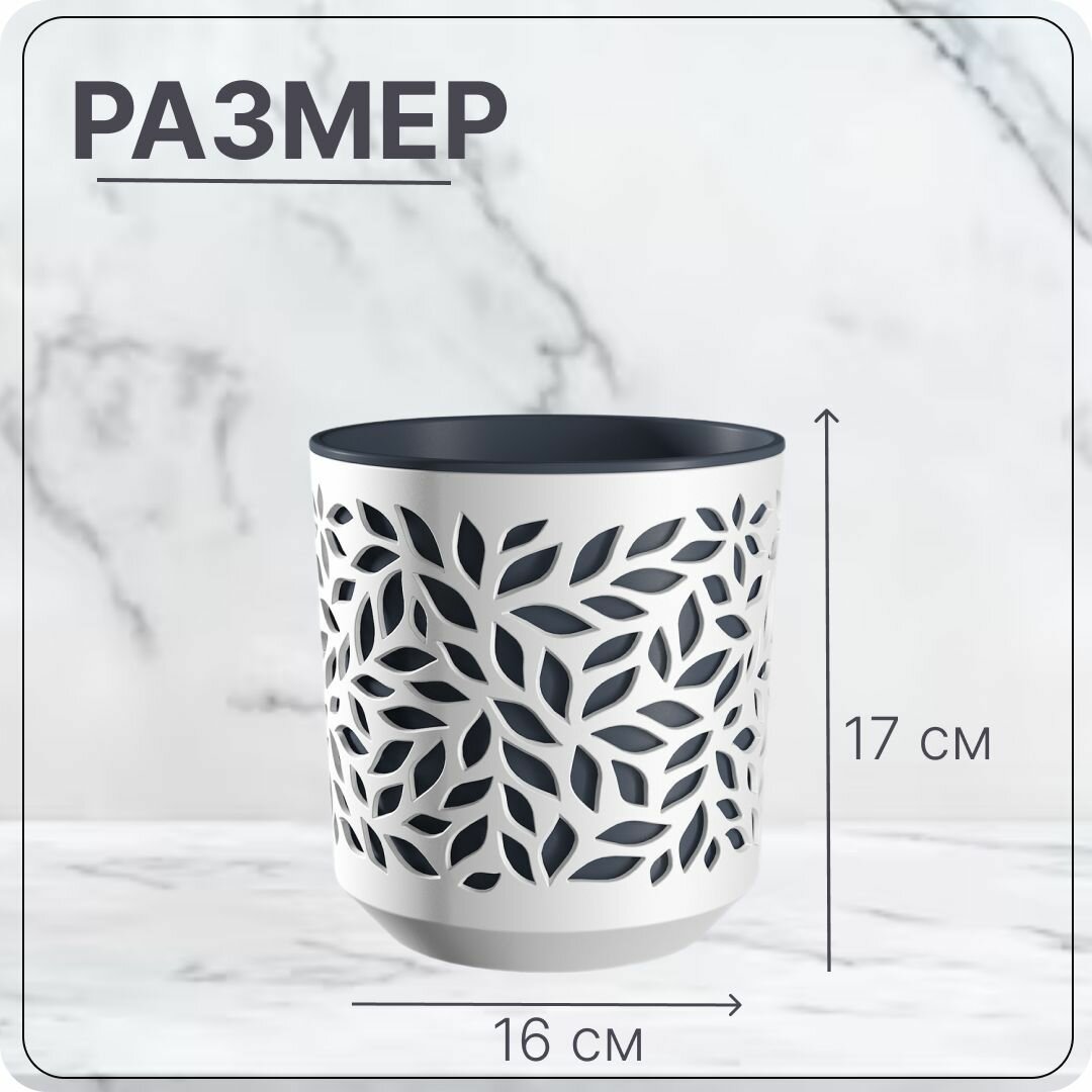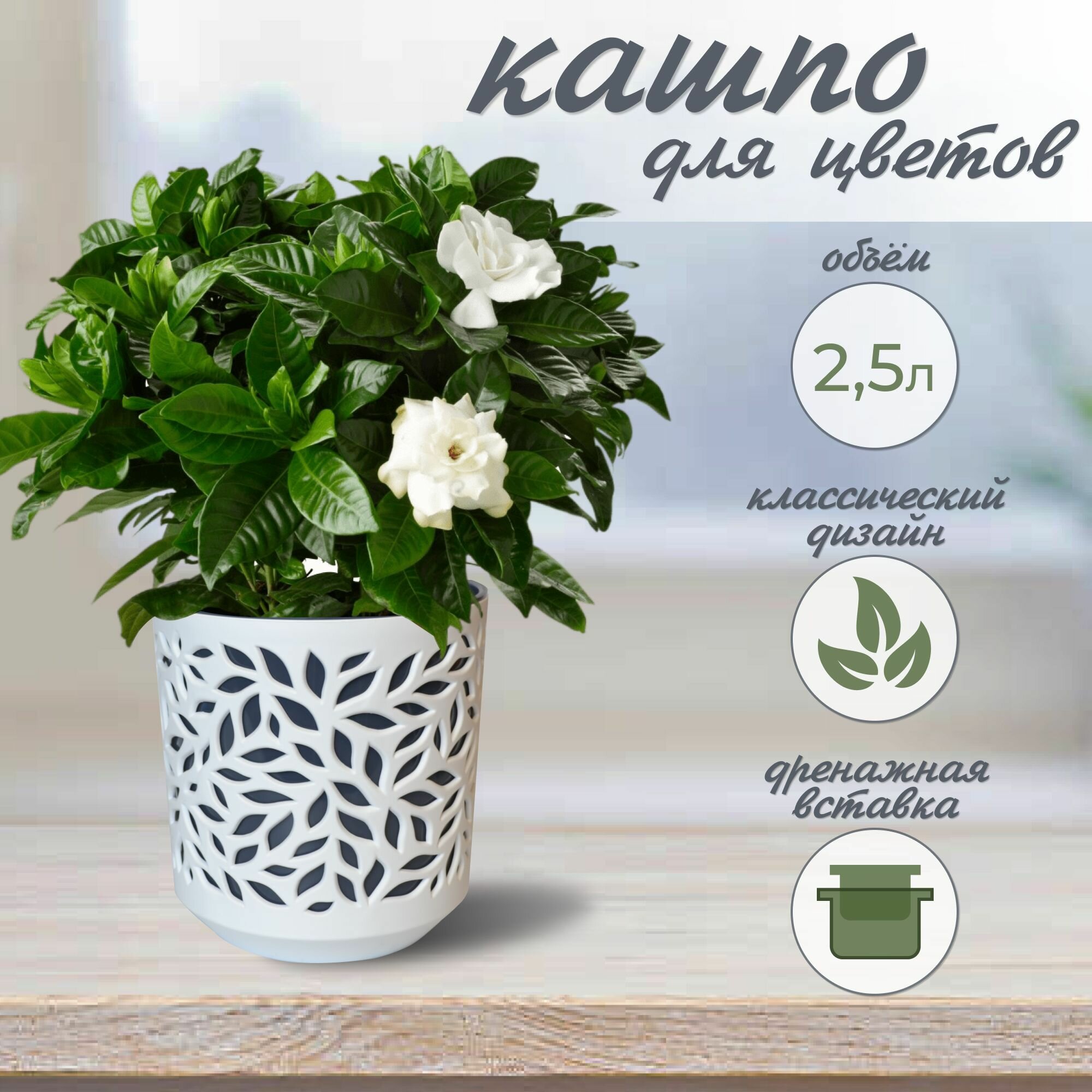 Кашпо для цветов пластиковое 2,5л d-16.2 см "Leaves" Белый/Белый