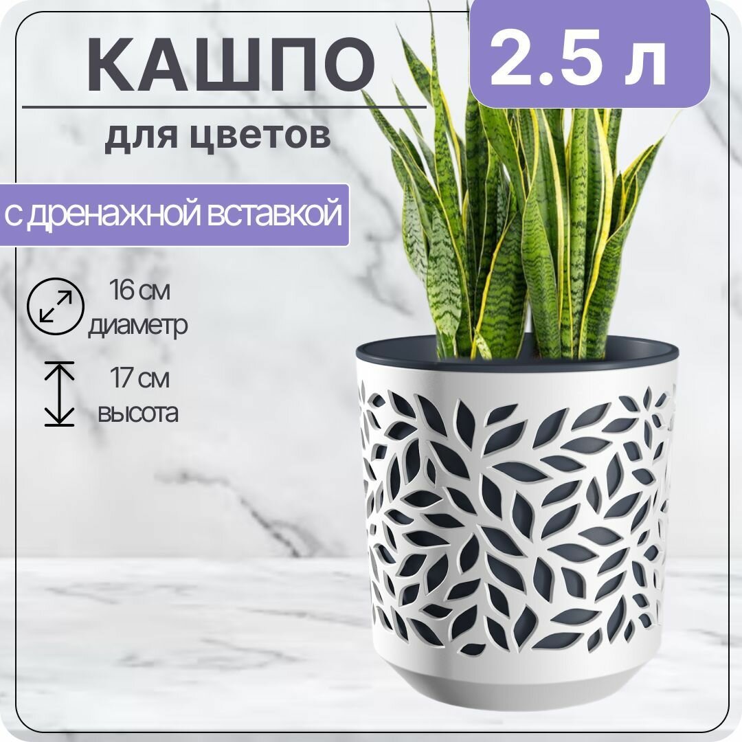 Купить кашпо Leaves 2,5л пластик белый/антрацит