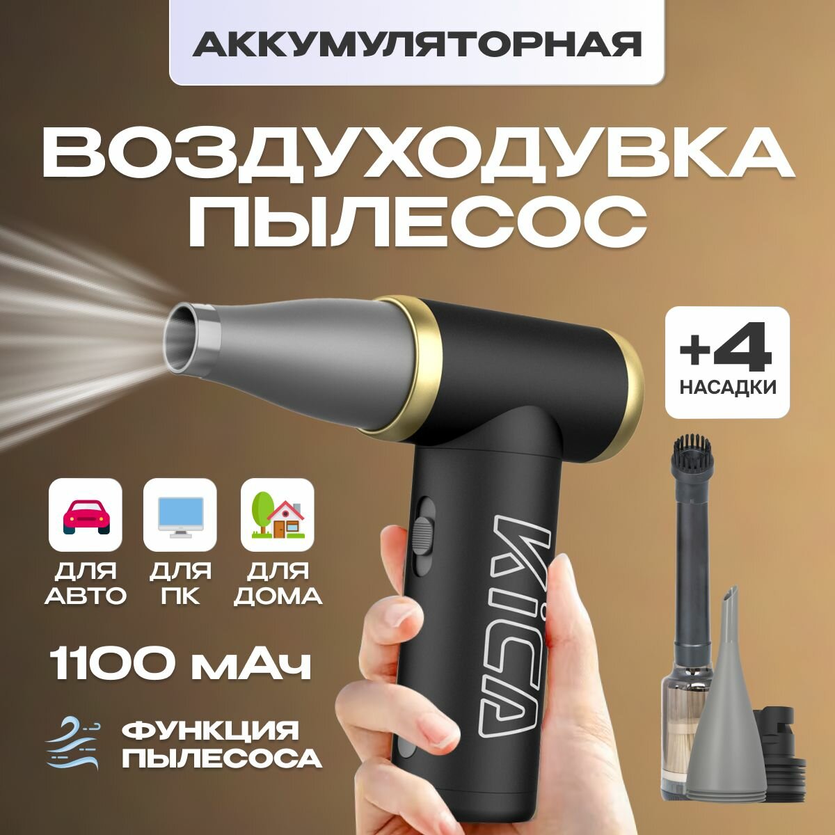 Воздуходувка аккумуляторная для автомобиля / компьютера KiCa Jet Fan 2 Kit (Jet Fan 2 Vac Kit) Grey интересное: