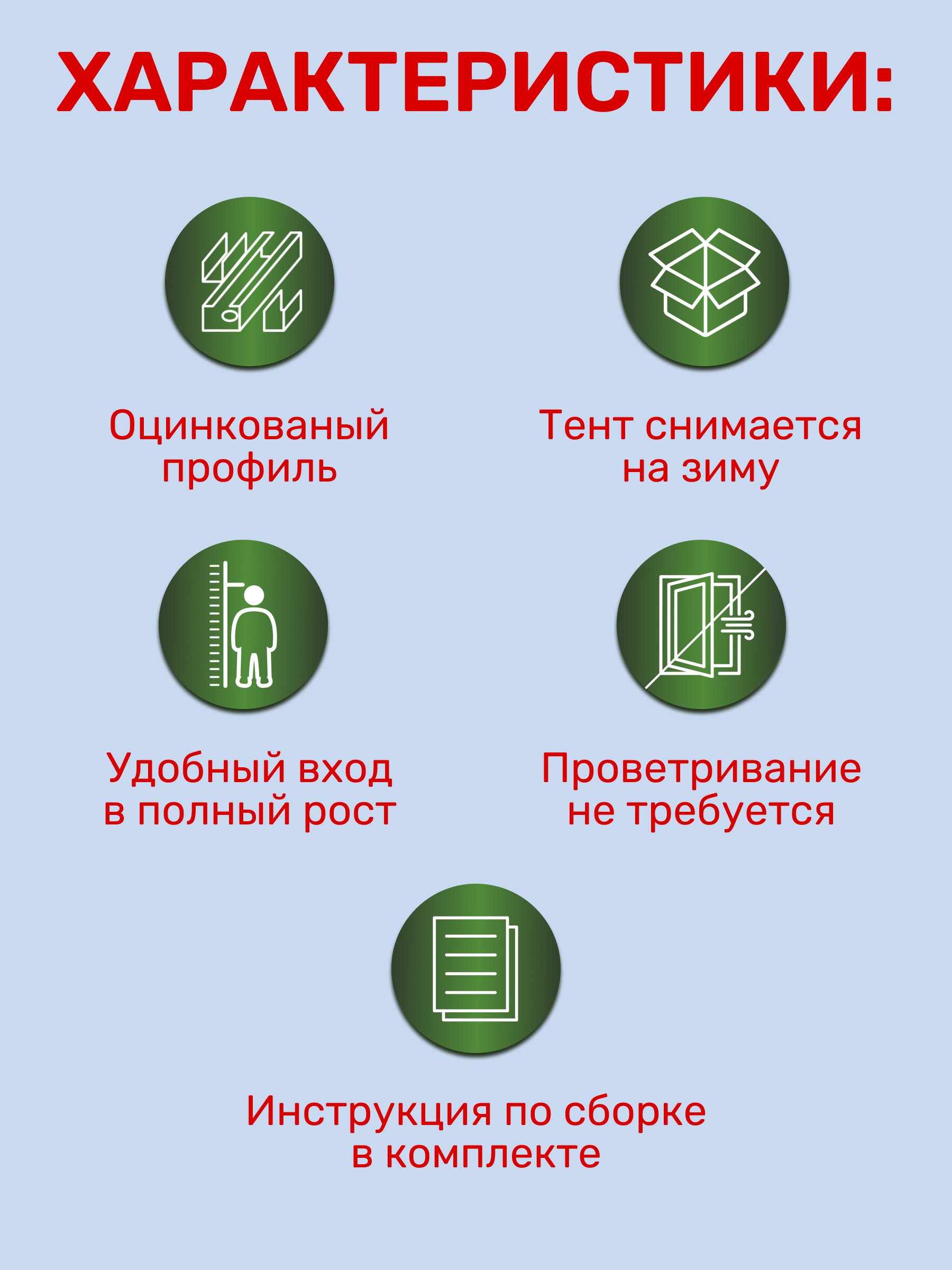 Теплица "Туннельная" TG-6m, оцинкованный металл, 300x200x200см
