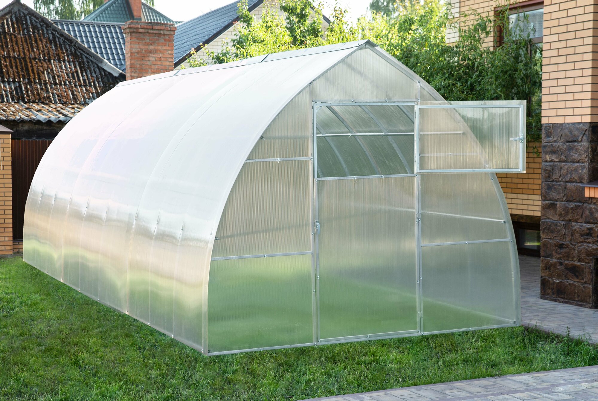 Купить Теплица ТМК Стелла. Каркас из профильной трубы 30х20 мм, прозрачный поликарбонат 3,7 мм, 6х2,7х2,3 м