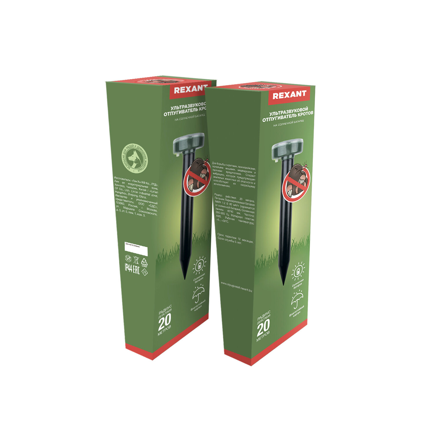 Отпугиватель ультразвуковой кротов на солнечной батарее (R20) REXANT