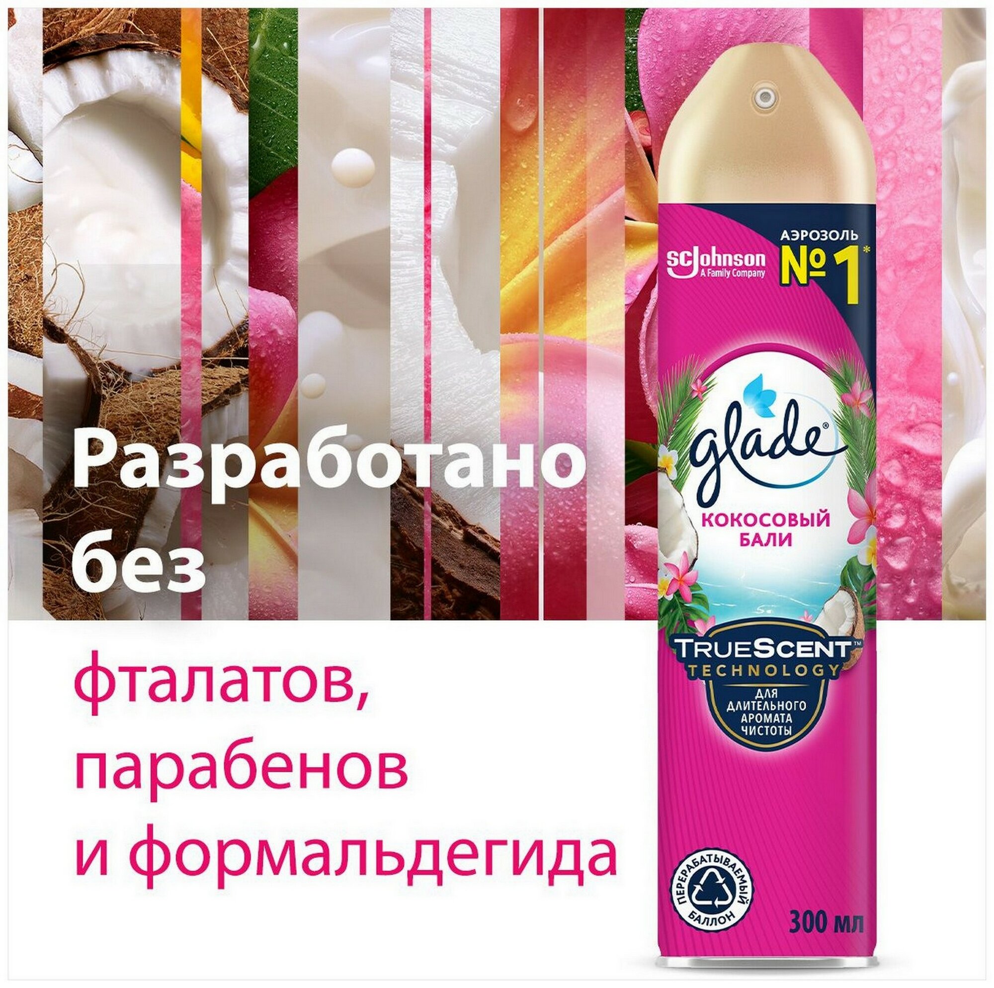Комплект 6 штук, Освежитель воздуха Glade Аэрозоль Кокосовый Бали, 300 мл