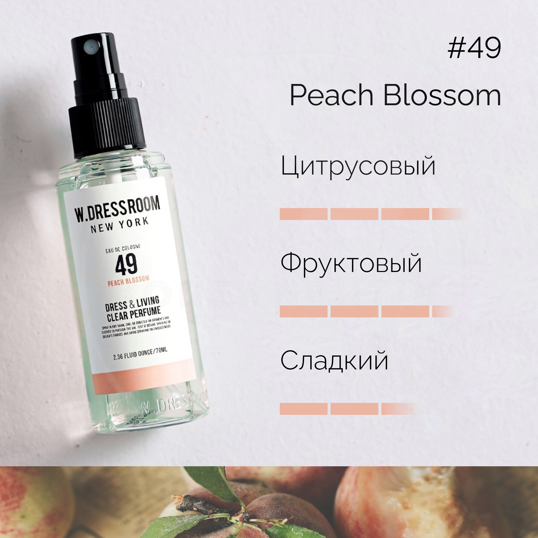 Купить Парфюмированный спрей Dress & Living Clear Perfume No.49 Peach Blossom 70 ml W.Dressroom/ Спрей для одежды/ BTS