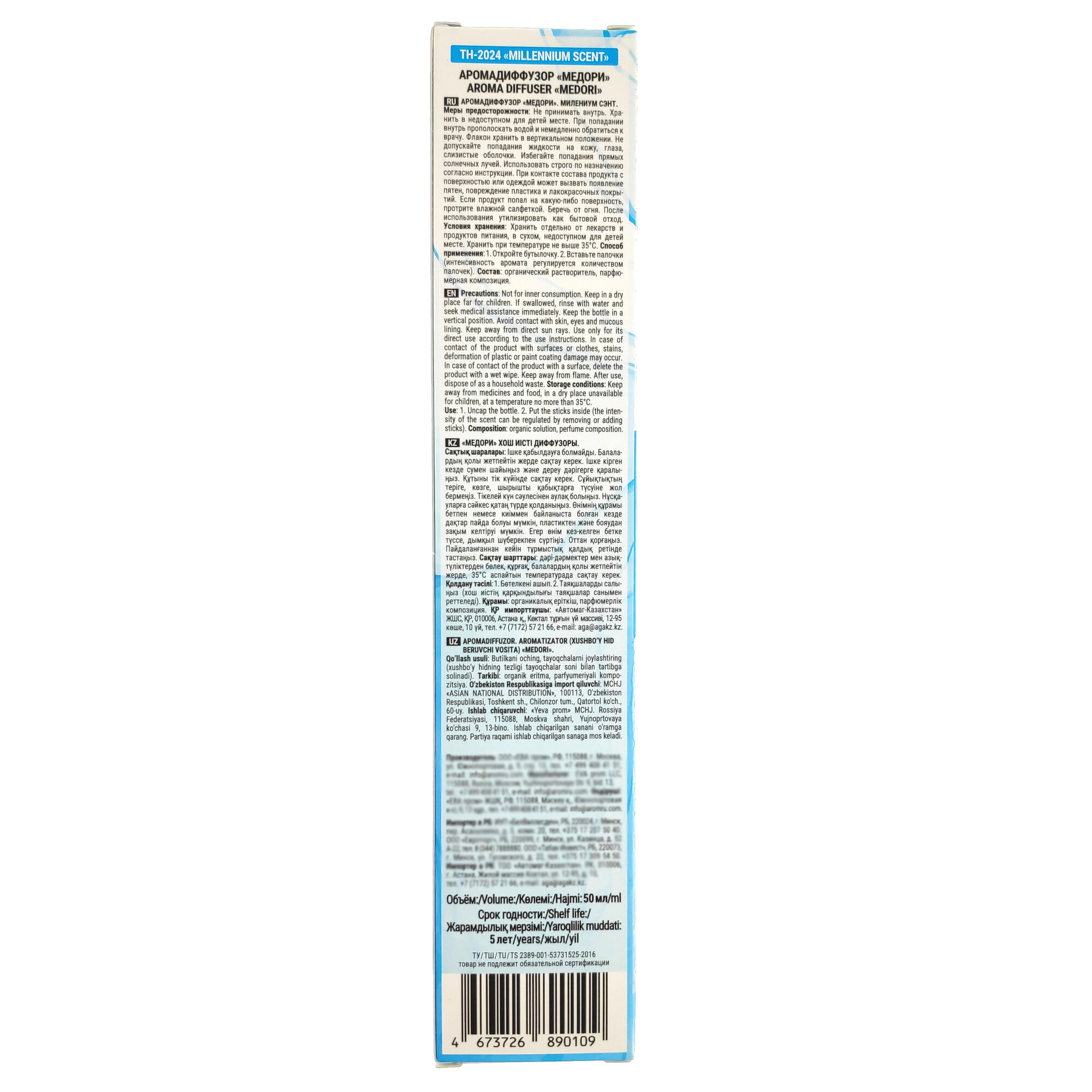 Medori Home Perfume TH-2024 Millennium Scent Аромадиффузор для дома с палочками Аромат тысячилетия 50 мл