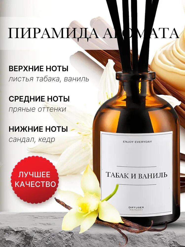 Ароматический диффузор Табак и Ваниль / ароматизатор для дома с палочками