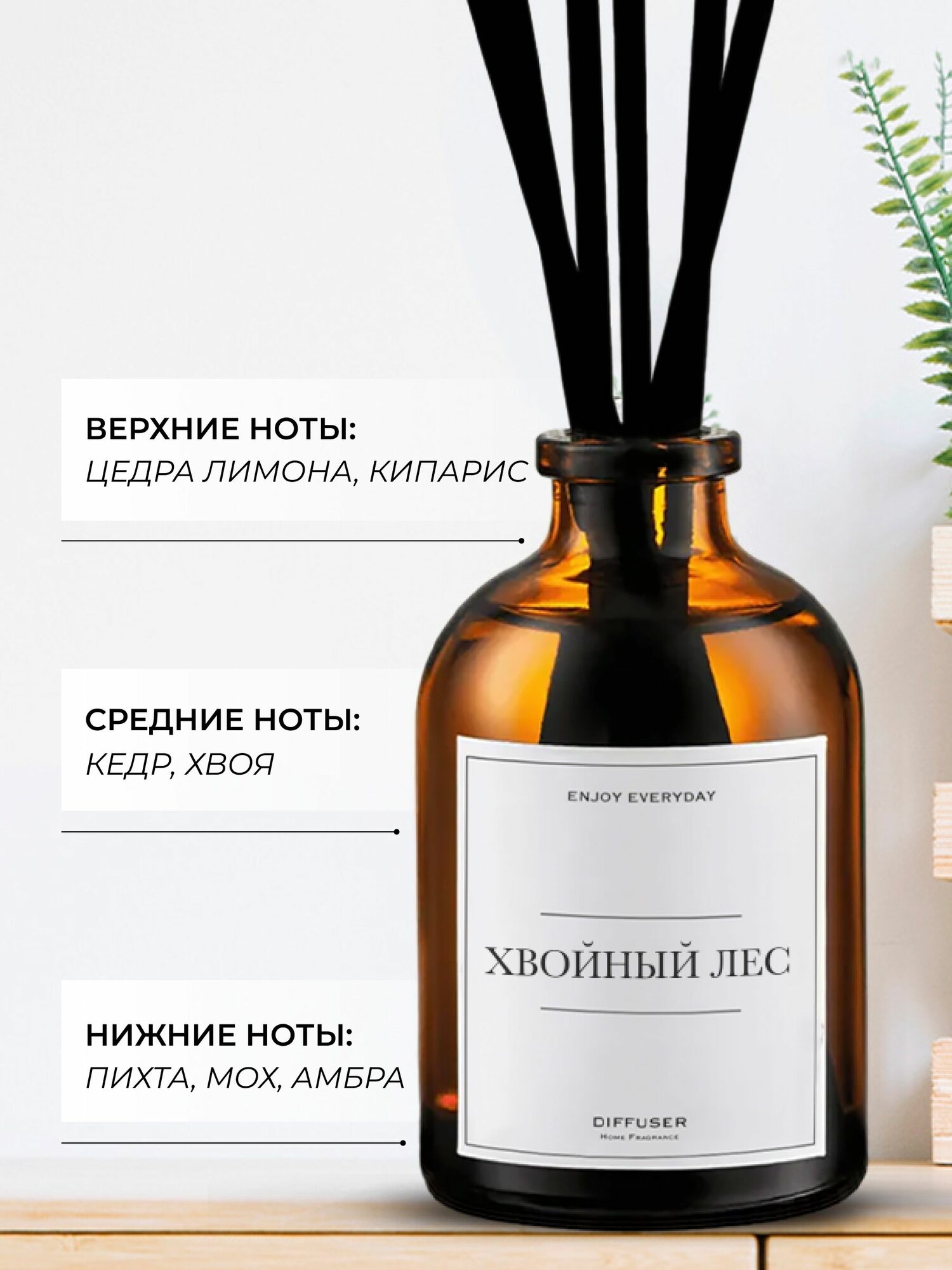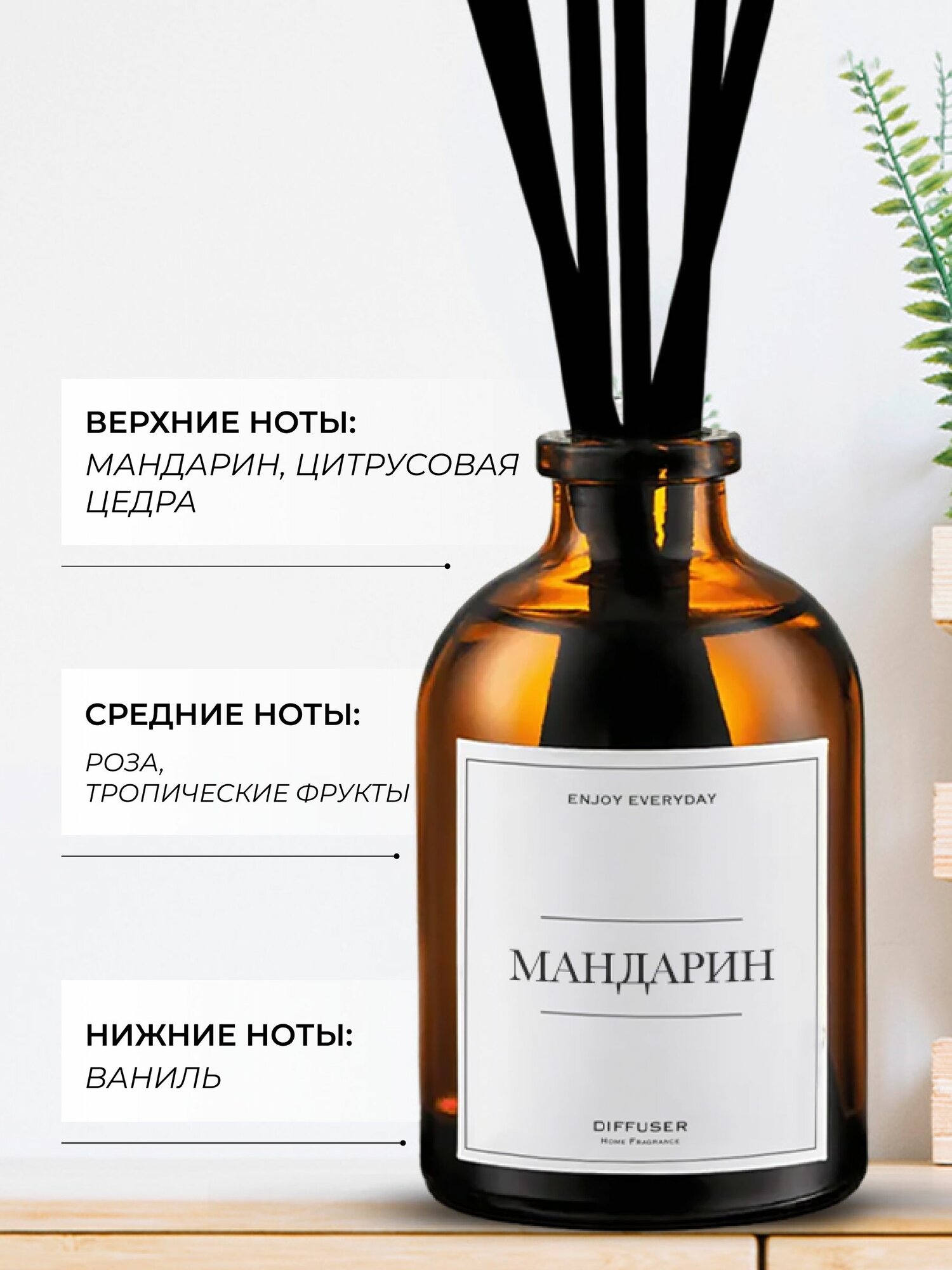Ароматический диффузор Черный перец, Амбра, Нероли / ароматизатор для дома с палочками