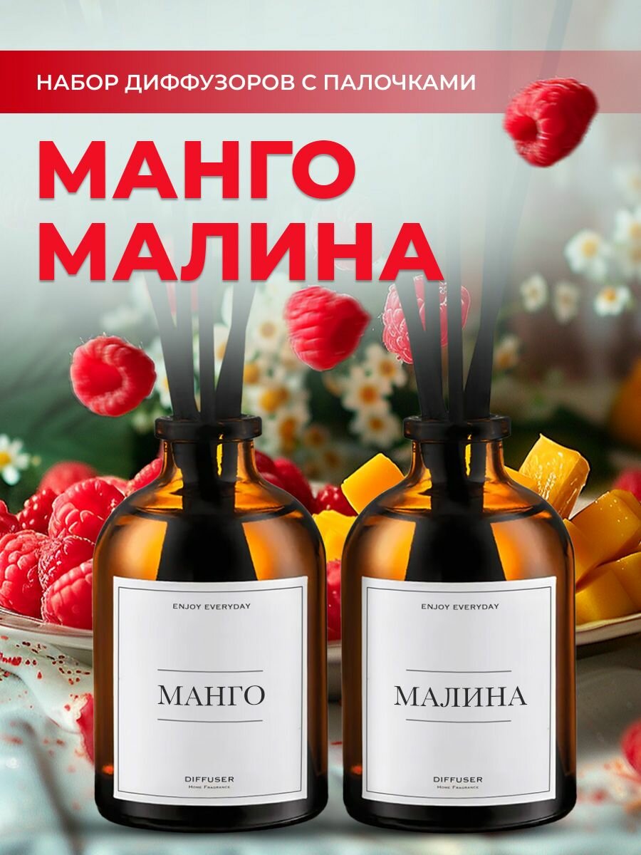 Купить Набор ароматических диффузоров Малина + Манго / ароматизатор для дома с палочками 2 шт