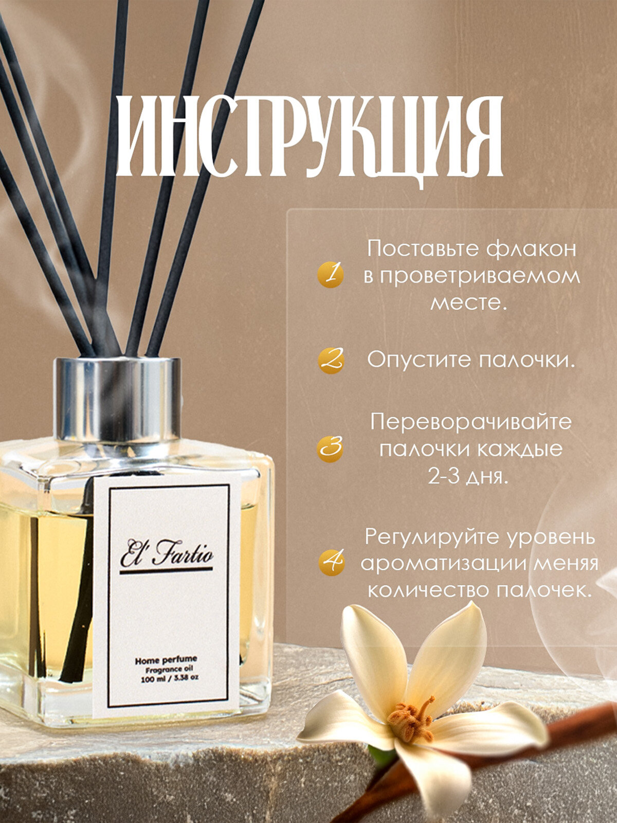 Ароматизатор для дома с палочками парфюм 100 мл, аромат Ваниль Табак интересное: