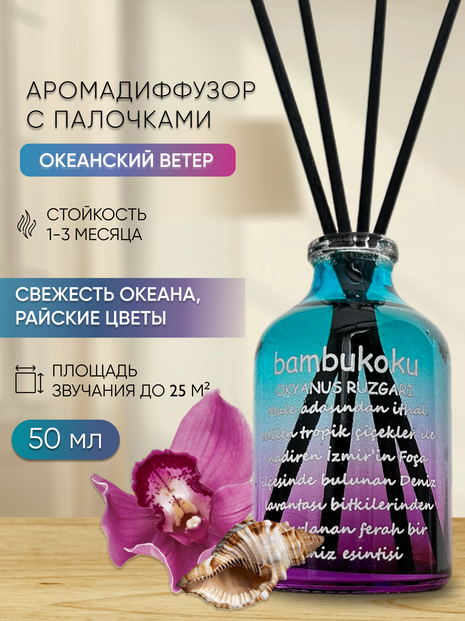 СохранитьАроматизатор для дома парфюм, диффузор с палочками Океанский ветер 50 мл интересное: