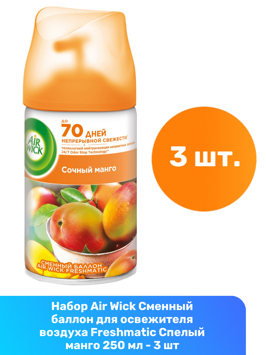 Набор из 3 штук Запасной баллон Air Wick Refill Cпелый манго 250мл