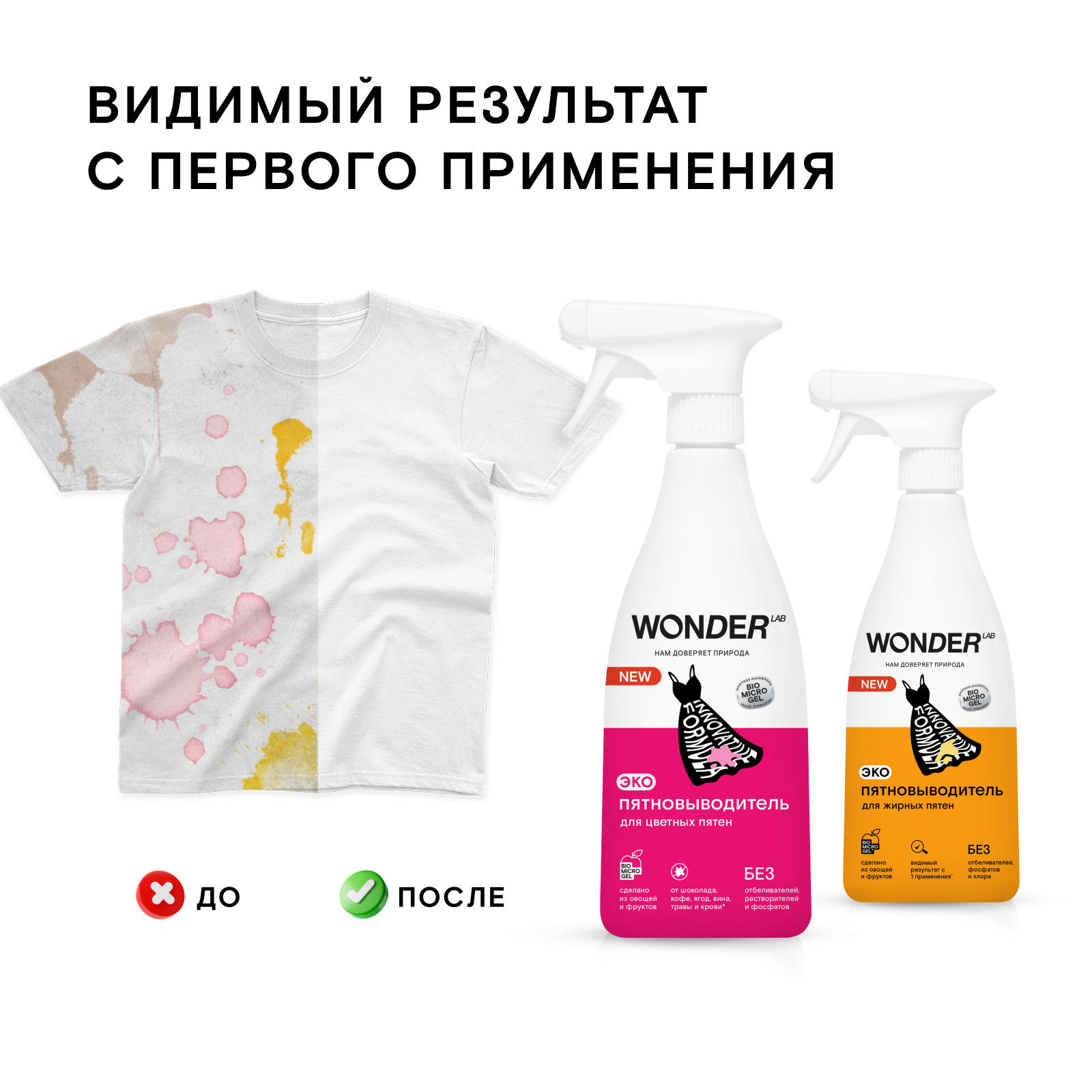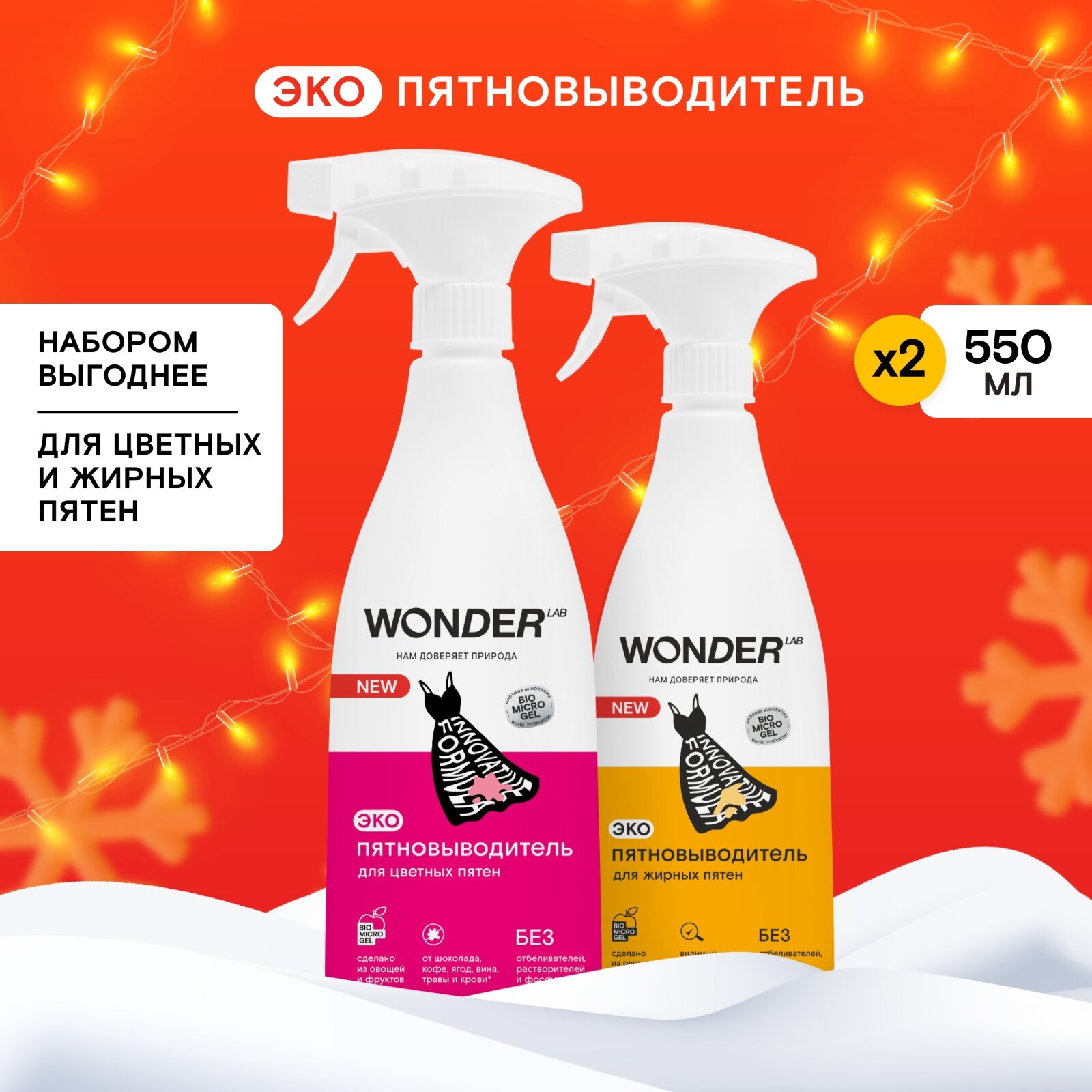 Набор пятновыводителей для цветных и жирных пятен WONDER LAB, для вещей и детского белья, 2 х 0,55 л